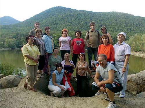 ╤сторико-культурний туризм з п╕дйомом у гори по╓днали сп╕вроб╕тники Всеукра╖нського ╕нформац╕йно-культурного центру в день здоров’я, який традиц╕йно проводиться в установ╕ щороку з ╕н╕ц╕ативи профсп╕лково╖ орган╕зац╕╖. За кошти в╕д сплати внеск╕в членами профсп╕лки прац╕вник╕в культури ми побували у попередн╕ роки в музе╖ всесв╕тньо в╕домого марин╕ста ╤вана Айвазовського в Феодос╕╖, будинку поета ╕ художника Максим╕л╕ана Волошина в Коктебел╕, на бал╕ хризантем у Н╕к╕тському ботан╕чному саду, про╖хали вздовж П╕вденного узбережжя Чорного моря ╕ милувалися його панорамою, що в╕дкрива╓ться зору з оглядових майданчик╕в Байдарських вор╕т ╕ Форосько╖ церкви, зд╕йснили по╖здку на Кам’яну Могилу – св╕тову пам’ятку давньо╖ культури Укра╖ни поблизу Мел╕тополя Запор╕зько╖ област╕. Цей пагорб тисячол╕ттями служив людям в╕втарем для в╕дправлення рел╕г╕йних обряд╕в, м╕стить к╕лька тисяч ун╕кальних стародавн╕х наскельних зображень-петрогл╕ф╕в. Як застиглу кам’яну симфон╕ю оглядали ми складний шестиповерховий лаб╕ринт найпротяжн╕шого в Криму печерного комплексу Кизил-Коба, що в переклад╕ з тюркських мов означа╓ Червон╕ печери. В╕н розташований у невелик╕й замкнен╕й ущелин╕ з п╕дземними р╕ками, проточними озерами ╕ сифонами на в╕дстан╕ 3,5 к╕лометра в╕д села Перевальне ╕ простяга╓ться б╕льш як на двадцять к╕лометр╕в. З кам’яного схилу, де знаходиться вх╕д у печери, спустилися до водопаду Су-Учхан (вода, що летить), ╕ за теч╕╓ю г╕рсько╖ р╕чки вийшли л╕совою стежкою вниз у живописну долину неподал╕к траси С╕мферополь — Алушта.