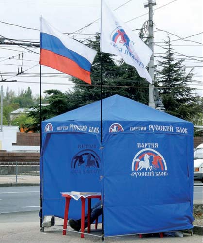 Серед численних антиукра╖нських ╕ антидержавних парт╕й, як╕ в╕льно створен╕ ╕ безперешкодно функц╕онують в Укра╖н╕, а частина ╖х бере участь у виборах до Верховно╖ Ради в 2012 роц╕, «Русский блок» вид╕ля╓ться особливою агрес╕╓ю, до того ж дозволяючи соб╕ проводити передвиборну аг╕тац╕ю п╕д рос╕йськими триколорами. 4 серпня цього року голова парт╕╖ Геннад╕й Басов заявив на з’╖зд╕, що укра╖нськ╕й «держав╕ необх╕дна парт╕я, яка представлятиме реальн╕ ╕нтереси Русского м╕ра». А дал╕ перерахував вс╕ заходи, як╕ треба провести для того, щоб зам╕нити вс╕ укра╖нськ╕ ц╕нност╕ в Укра╖н╕ на рос╕йськ╕. 5 липня 2008 року на Графськ╕й пристан╕ в╕дбувся сумнозв╕сний антидержавний виступ, у якому взяли участь ╕ члени парт╕╖ «Русский блок», якими керували депутати Севастопольсько╖ м╕сько╖ ради в╕д фракц╕╖ «Рос╕йський блок» Геннад╕й Басов, Андр╕й Глушаков, Андр╕й Меркулов, Дмитро Б╓л╕к. Вони напали на в╕йськовослужбовц╕в строково╖ служби В╕йськово-Морських Сил Збройних Сил Укра╖ни ╕ не допустили встановлення мемор╕ально╖ дошки на честь п╕дняття на Чорноморському флот╕ укра╖нських прапор╕в у 1918 роц╕. Укра╖нська Фем╕да н╕як не покарала учасник╕в антидержавного виступу, квал╕ф╕кувавши ╖хн╕ д╕╖ як хул╕ганство, натом╕сть за сприяння Костянтина Затул╕на ╖х було нав╕ть нагороджено медалями. Тепер ц╕ непокаран╕ люди п╕д рос╕йськими прапорами ╕ з символом – тр╕йкою коней, розфарбованих у кольори рос╕йського прапора — б╕лий, син╕й ╕ червоний, йдуть до Верховно╖ Ради Укра╖ни – за парт╕йним списком та по мажоритарних округах. Там вони на св╕й антиукра╖нський розсуд хочуть зм╕нювати закони ╕ пол╕тику Укра╖нсько╖ держави...