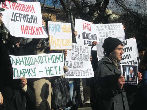 ...╤ ось заговорила вулиця С╕мферополя, де в затишному будиночку високоповажн╕ люди стежать за тим, наск╕льки шанобливо ╕ уважно дослухаються до позиц╕╖ Глави держави кримськ╕ в╕льнодумц╕. ╤ навза╓м — саме зв╕дси обурений люд ма╓ найб╕льше шанс╕в докричатися до того, хто мусить бути добрим, чесним, справедливим, дбайливим, мудрим ╕ розц╕нювати житт╓в╕ реал╕╖ саме з точки зору ус╕х цих чеснот, яких вимага╓ його високий титул. Ой, ╕ важка ж ти, шапка Мономаха! Важка… Те, що можна прочитати на плакатах, з якими прибули у середу до Представництва Президента Укра╖ни в Криму прац╕вники Кримсько╖ астроф╕зично╖ обсерватор╕╖, вже було присутн╓ в текстах ╕ пом╕ж рядками багатьох «св╕тличних» публ╕кац╕й. «Без науки нема╓ майбутнього!», «Руки геть в╕д науки!», «Порятуймо обсерватор╕ю!», «Зупин╕мо дерибан науки!», «Табачник, руки геть в╕д з╕рок!» ╤ знову-таки про цього ж м╕н╕стра: «Табачна» реорган╕зац╕я НД╤ «КрАО» — «консольбуд╕вельна» реформа в╕тчизняно╖ астроф╕зики?». Не надто прозоро, але будь-як╕й людин╕, посвячен╕й у переб╕г под╕й, сутн╕сть зрозум╕ла. Те, що в╕днин╕ астроф╕зична обсерватор╕я втрача╓ св╕й самост╕йний статус ╕ ма╓ бути при╓днана до Ки╖вського нац╕онального ун╕верситету ╕м. Т. Г. Шевченка, в╕дкрива╓ перспективи для приватизац╕╖ ╖╖ майна ╕ перетворення с. Научного на курорт, як це вже давно мр╕╓ться сп╕керу кримсько╖ Верховно╖ Ради. ╤ хоча, здавалося б, в╕н уже оф╕ц╕йно в╕дмовився «ощасливити» науковц╕в чудовою ╕нфраструктурою ╕ квартирами у «висотках», але переоц╕нка ц╕нностей чи не на ус╕х р╕внях таки в╕дбулася. ╤ ск╕льки б не скандували присутн╕ на акц╕╖: «Наука важлив╕ше прибутк╕в!», «Вчен╕ кращ╕ за буржу╖в!», т╕, хто вм╕╓ ╕ хоче жити «красиво», лише посм╕хаються соб╕ в кулак. ╤ тут Президентов╕ не позаздриш… А т╕, хто ближче до з╕рок, н╕як не збагнуть, чому ц╕кавляться сьогодн╕ не ними як висококласними фах╕вцями, а майном обсерватор╕╖, чому вимагають, аби ╖хня праця давала негайну в╕ддачу: «Сьогодн╕ грош╕, а завтра — ст╕льц╕». А ще не розум╕ють, чому, зат╕явши оцю доленосну реорган╕зац╕ю, не порадилися з ними, не дослухалися до думки Нац╕онально╖ академ╕╖ наук Укра╖ни, яка готова була взяти п╕д сво╓ крило обсерватор╕ю? Чому увесь вчений св╕т поклав на лопатки один-╓диний глибоко не шанований у народ╕ м╕н╕стр? ╤ чому це не ╓ п╕дставою, аби зам╕нити цього чиновника на людину з незаплямованим ╕м’ям? Разом ╕з прац╕вниками обсерватор╕╖ помандрувати м╕стом вир╕шили ╕ студенти. По-перше, тому що вони взагал╕ за справедлив╕сть, а по-друге, тому що ╕ ╖х може сп╕ткати под╕бна доля. А ще тому, що ╖х поки що не в╕дучили називати реч╕ сво╖ми ╕менами: «М╕н╕стерству не потр╕бна наука, йому потр╕бний б╕знес!», — сканду╓ молодь. «Ми будемо боротися!» ╤ хоча студенти теж п╕дготували сво╓ звернення до Представництва Президента Укра╖ни в Криму, його не взяли до розгляду. Запросили лише делегац╕ю в╕д КрАО, а груп╕ п╕дтримки запропонували не заважати перемовинам. Тож люди з транспарантами вирушили до Ради м╕н╕стр╕в ╕ потрапили якраз на об╕д, нагадавши тим самим декому ╕з прац╕вник╕в обсерватор╕╖, що скорочене вдв╕ч╕ ф╕нансування неодм╕нно позначиться ╕ на ╖хньому меню. Та х╕ба вони могли отак соб╕ н╕ з чим роз╕йтися, адже в Ки