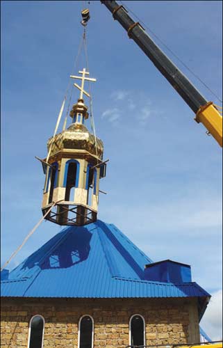 Напередодн╕ св╕тлого свята Воскрес╕ння Христового в Криму, поблизу с. Перевальне, в╕дбулося освячення та встановлення хреста ╕ купола на храм╕ Преображення Господнього. Очолив церемон╕ю арх╕╓пископ С╕мферопольський ╕ Кримський Климент Укра╖нсько╖ православно╖ церкви Ки╖вського патр╕архату, допомагали йому священики о. ╤ван, о. Степан та о. Павло. Це вже трет╕й православний храм, який зводить на кримськ╕й земл╕ отець ╤ван — настоятель церкви Покрови Пресвято╖ Богородиц╕, що в с. Перевальне. З Божою пом╕ччю, з допомогою небайдужих прихожан ╕ з двома найпершими сво╖ми пом╕чниками — синами, також священиками, у 2009 роц╕ розпочав в╕н цю святу справу. «Якщо м╕ряти грошима, — каже о. ╤ван, — то вкладено в це буд╕вництво (а висота храму — понад 20 метр╕в!), напевне, вже з м╕льйон гривень. Але ж не лише у грошах тут справа...». Одна з прихожанок пригадала, що коли чотири роки тому освячували д╕лянку п╕д храм, на неб╕ з’явилося... вид╕ння, яке нагадувало хрест. ╤ ось тепер цей Знак Божий д╕йсно возн╕сся у кримське небо, яке зранку було затягнуте хмарами, але — чи ж не диво! — в╕дразу прояснилося, як т╕льки купол з хрестом закр╕пили на верх╕вц╕ храму. Таки справд╕ — незвичайне тут м╕сце, благодатне, святе — може, тому, що зв╕дси, з Перевалу, ближче до неба? 8 травня у храм╕ Преображення Господнього буде правитися перша — вже п╕д освяченим хрестом — служба. Храм чека╓ на вас!