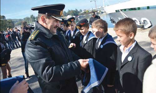 Наприк╕нц╕ минулого тижня в м╕ст╕-геро╖ Керч п╕д патронатом командувача В╕йськово-Морських Сил Укра╖ни адм╕рала Юр╕я ╤ль╖на пройшло урочисте в╕дкриття в╕йськово-патр╕отичного гуртка «Школа юнг» та посвячення в юнги 13 д╕тей-сир╕т з Республ╕канського навчального закладу «Керченська спец╕ал╕зована школа-╕нтернат з поглибленим вивченням окремих предмет╕в». Це – перша в Керч╕ ╕ вже шоста в Укра╖н╕ школа юнг ВМС Укра╖ни. Начальник Керченського гарн╕зону п╕дполковник Олександр Са╓нко, командир Керченського загону морсько╖ охорони Державно╖ прикордонно╖ служби Укра╖ни кап╕тан 1 рангу Юр╕й Лошак, дирекц╕я дитячого закладу вручили юнгам гюйси, значки, чорн╕ берети морсько╖ п╕хоти та сувен╕ри. П╕дтримати д╕тей-сир╕т прийшли ╕ студенти 1 курсу Судномехан╕чного техн╕куму Керченського державного морського технолог╕чного ун╕верситету. На честь майбутн╕х захисник╕в В╕тчизни знаменна група винесла прапор В╕йськово-Морських Сил Збройних Сил Укра╖ни, пролунав Державний Г╕мн Укра╖ни, святковий салют. На борту корабля «Донбас» було проведено екскурс╕ю для юнг, на камбуз╕ хлопчаки посмакували смачними матроськими стравами, як╕ спец╕ально для них приготував корабельний кок. В╕дбувся показ стр╕лецького озбро╓ння морсько╖ п╕хоти, ек╕п╕рування та спецзасоб╕в доглядово╖ групи морсько╖ охорони. За словами директора школи-╕нтернату Карол╕ни Романець, шефи — во╖ни Керченського окремого батальйону берегово╖ оборони ВМС Укра╖ни та Керченського загону морсько╖ охорони — у дитячому заклад╕ проводять багато заход╕в ╕ завжди бажан╕ гост╕. — Д╕ти р╕зного характеру, р╕зно╖ житт╓во╖ дол╕, ╓ «важк╕» д╕ти, ╖м 12-13 рок╕в. Важливо, що це — ╖хн╓ самост╕йне ╕ серйозне р╕шення навчатися в школ╕ юнг. А ми, педагоги, спод╕ва╓мося, що саме школа юнг допоможе ╖м виправитися, стати г╕дними ╕ нашого навчального закладу, ╕ нашо╖ кра╖ни, щоб ми пот╕м могли ними гордитися, — каже класний кер╕вник Св╕тлана Новомодна. Начальник Керченського гарн╕зону п╕дполковник Олександр Са╓нко висловив впевнен╕сть, що серед сьогодн╕шн╕х юнг – майбутн╕ кращ╕ оф╕цери в╕тчизняного флоту, морськ╕ п╕хотинц╕, якими буде пишатися кра╖на, побажав ус╕ляких гаразд╕в та усп╕х╕в у навчанн╕. За словами самих хлопчак╕в, вже зараз вони хочуть вчитися водити корабл╕, виходити у в╕дкрите море, в’язати морськ╕ вузли та знати морськ╕ закони. Про ╖хн╕ щир╕ бажання говорили неп╕дробн╕ дитяч╕ усм╕шки, як╕ сяяли п╕д час цього свята. Як ран╕ше зазначив командувач ВМС Укра╖ни адм╕рал Юр╕й ╤ль╖н, найближчим часом оч╕ку╓ться в╕дкриття шк╕л юнг у Феодос╕╖, Новофедор╕вц╕, а також у Донецьк╕й ╕ Льв╕вськ╕й областях, як╕ шефствують над кораблями ВМС Укра╖ни.