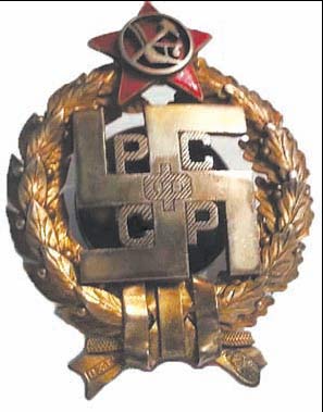 Кр╕м нарукавно╖ в╕дзнаки виготовлявся ще спец╕альний нагрудний знак для командир╕в в╕йськових частин Червоно╖ арм╕╖, головним елементом якого була свастика з надписом «РСФСР», котра накладалася на лаврово-дубовий в╕нок, що ув╕нчувався п’ятикутною червоною з╕ркою з молотом ╕ плугом на н╕й.