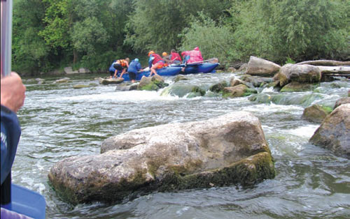 П╕д таким гаслом члени Волинсько╖ молод╕жно╖ громадсько╖ орган╕зац╕╖ «Школа козацького гарту» за сприяння Волинського обласного управл╕ння молод╕ ╕ спорту зд╕йснили навчально-вишк╕льний пох╕д по порогах П╕вденного Бугу. Пох╕д був присвячений 23-й р╕чниц╕ Незалежност╕ Укра╖ни. Понад 20 молодих ос╕б з Волин╕ об’╓днались п╕д сп╕льною ╕де╓ю: пройти небезпечн╕ пороги П╕вденного Бугу ╕ особисто в╕дчути, хоч частково, як козаки долали пороги Дн╕пра, ходили у в╕дкрите море до берег╕в Османсько╖ ╕мпер╕╖ визволяти з полону укра╖нських бранц╕в. В╕нницьк╕ козаки Брацлавського полку ╕мен╕ ╤вана Богуна на чол╕ з отаманом Володимиром Воловодюком, до якого ми звернулися, надали нам допомогу як побратими. На одн╕й ╕з В╕нницьких турбаз ми були повн╕стю забезпечен╕ вс╕м необх╕дним для подорож╕-сплаву: ╕ рятувальними жилетами, ╕ г╕дром╕шками, ╕ плавзасобами, ╕ захисними касками та ╕ншим необх╕дним спорядженням. Досв╕дчен╕ козаки-╕нструктори ╤гор та Олександр нас навчали, проводячи майстер-клас, як складати катамарани, як працювати веслами на бурхлив╕й вод╕, як д╕яти в екстремальних умовах. Потренувавшись на тихому плес╕ б╕ля села Тивер ╕ п╕днявши жовто-блакитний прапор Звича╓вого козацтва, на двох катамаранах волинськ╕ козаки вирушили вниз по П╕вденному Бугу. «Слава Укра╖н╕!» — вигукували ми щораз, побачивши м╕сцевих рибалок, як╕ чатували на берез╕ р╕чки. «Героям слава!» — лунала правильна в╕дпов╕дь патр╕от╕в. Сонце ласкаво огортало напружен╕ м’язи молодих козак╕в, як╕ дружно гребли на катамаранах. ╤ коли появилися перш╕ пороги, що здалеку застер╕гали сво╖м шумом, то це не змогло зупинити см╕ливих волинян, т╕льки ще б╕льше задало наснаги ╕ прибавляло сил. Спочатку перешкоди проходили з острахом, щоразу застрягаючи на м╕лин╕. Але дружн╕ д╕╖ команди усп╕шно виривали катамаран з кам’яно╖ пастки. Без команди, на св╕й розсуд, хлопц╕ ╕ д╕вчата стрибали у бурхливу воду ╕ щосили штовхали катамаран. А в╕н, тримаючись мов танк на плацу, скрип╕в по каменях та знову випливав вже на тихоплинн╕шу р╕ку. Тод╕ можна спок╕йно милуватися кра╓видами, в╕д яких уже важко було в╕двести св╕й з╕р. Цю красиву р╕чку в далекому минулому зм╕стовно називали наш╕ предки — давн╕ слов’яни — Бог. Ще й нин╕ у Зах╕дн╕й ╢вроп╕ на вс╕х археолог╕чних картах вона так ╕ назива╓ться. Але комун╕стичн╕ ортодокси у 20-х роках минулого стол╕ття перейменували ╖╖ на Буг. А оск╕льки така назва уже ╕снувала — Зах╕дний Буг, то назвали цю р╕чку — П╕вденний Буг. Це третя за величиною р╕ка Укра╖ни, що прот╕ка╓ центральними ╕ п╕вденними ╖╖ областями через зону л╕состепу ╕ степу. Тут на поверхню виходить найдавн╕ше в Укра╖н╕ геолог╕чне утворення — Укра╖нський кристал╕чний щит, завдяки якому П╕в-денний Буг в╕домий сво╖ми порогами. Гран╕тн╕ скел╕ по берегах, огорнут╕, мов зеленим оксамитом, острови, теплий кл╕мат Побужжя, багатство флори ╕ фауни, нез╕псут╕ цив╕л╕зац╕╓ю, роблять в╕дпочинок у ц╕й м╕сцевост╕ надзвичайно привабливим та емоц╕йним. У Побужж╕ д╕╓ ландшафт-ний парк «Гран╕тно-степове Побужжя». З п╕вденнобузькими порогами в давнину т╕сно була пов’язана ╕стор╕я запор╕зько-гайдамацьких рух╕в. Тепер — це д╕лянка з найскладн╕шими на р╕чц╕ порогами «Миг╕я» ╕ «Гард». Розпечен