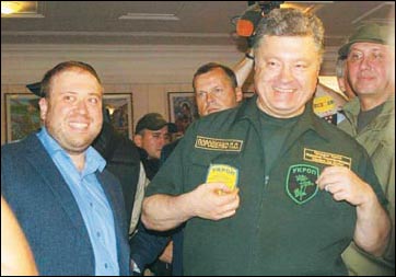 На фото: П. Порошенко у форм╕ з «укропом» п╕д час в╕дв╕дин Мар╕уполя