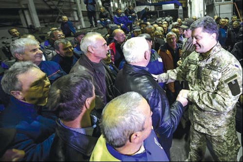 П╕д час по╖здки до Житомирсько╖ област╕ Президент Укра╖ни Петро Порошенко в╕дв╕дав Житомирський бронетанковий завод, який готу╓ться в╕дзначити 71-у р╕чницю в╕д дня створення. Глава держави ознайомився з виробничими потужностями п╕дпри╓мства, оглянув цехи заводу. Сп╕лкуючись з роб╕тниками, Президент в╕дзначив важливу роль Житомирського бронетанкового заводу у забезпеченн╕ обороноздатност╕ держави. «Я хочу подякувати вам за вашу працю, патр╕отизм. За те, що в цих складних умовах ви готов╕ робити все можливе для того, щоб держава була краще озбро╓на, захищена ╕ щоб ми продемонстрували, що ми — сильний, ╓диний укра╖нський народ», — сказав Петро Порошенко. Президент закликав прац╕вник╕в п╕дпри╓мства розглянути можлив╕сть переходу на тризм╕нний робочий граф╕к, щоб п╕двищити обсяги виробництва. За словами Президента, под╕╖ на Донбас╕ — «для нас В╕тчизняна в╕йна, коли ми захища╓мо нашу незалежн╕сть, суверен╕тет Укра╖ни, територ╕альну ц╕л╕сн╕сть. Це — в╕йна, яка згуртувала нашу нац╕ю, об’╓днала Укра╖нський народ, ╕ зараз ми демонстру╓мо, як вм╕╓мо любити и боронити Батьк╕вщину». Президент наголосив на тому, що кра╖на навчилася захищатися. «Зараз ми вже вм╕╓мо воювати, захищатися, робити все, щоб зупинити ворога. ╤ саме це дозволило нам оголосити режим припинення вогню. Нам потр╕бен мир, ╕ ми його забезпечимо», — наголосив Глава держави. Президент пооб╕цяв, що в╕н як Верховний голов-нокомандувач моб╕л╕зу╓ весь св╕т на п╕дтримку Укра╖ни. «Весь св╕т буде стояти поруч з нами, захищаючи укра╖нський суверен╕тет, незалежн╕сть, волю ╕ демократ╕ю. Будь-який загарбник опиниться в тотальн╕й м╕жнародн╕й ╕золяц╕╖ ╕ заплатить свою ц╕ну за те, що в╕н напав на Укра╖ну», — заявив Президент.