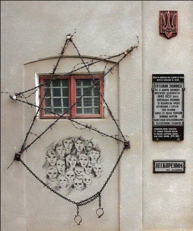 Перехожий, зупинись! Тут, в цьому будинку, протягом десятил╕ття (1942-1952) була пересильна в’язниця, де в╕дбували арешт, катування ╕ страти тво╖ краяни — борц╕ за волю Укра╖ни, невинн╕ жертви нацистсько-б╕льшовицьких тотал╕тарних режим╕в.