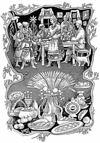 Після Різдва приходить другий празник - старий Новий рік, або свято Василя. А напередодні - 13 січня - Щедрий вечір, або свято Меланки. Зранку починали готувати другу обрядову кутю - щедру. На відміну од багатої, її можна було заправляти скороминою; на Поліссі, скажімо, зерна варили зі смальцем. Як і на багатвечір, кутю також ставили на покуть, дотримуючись попередніх обрядів. Крім того, господині пекли чимало млинців із салом, готували пироги, вареники з сиром, щоб віддаровувати щедрувальників та посівальників. Дехто з богомільніших різав чорну курку, щоб "інші добре неслися", адже саме з цією породою пов'язані численні забобони (якщо чорна курка починала співати півнем, то їй одразу відрубували голову, "оскільки вона віщувала покійника в родині"). Звечора і до півночі обходили оселі щедрувальники. Це було прерогативою лише дівчат. Юнки, зібравшись у гурти, відвідували сусідів з поетичними піснями-щедрівками. Крім того, дівчатка-підлітки поодинці чи гуртом оббігали односельців, щоб защедрувати. Тексти таких дитячих щедрівок виконували в один голос або ж речитативом. На Меланки ходили також і парубоцькі гурти; вони називалися "Водити Меланку". Одного з учасників хлопці перевдягали в жіноче вбрання і називали Меланкою. З цим сюжетом пов'язані сатиричні сценки, що їх розігрували учасники дійств. З щедрою кутею пов'язано чимало звичаїв. Скажімо, щоб залагодити якийсь конфлікт, сусіди йшли один до одного миритися, аби "Новий рік зустріти в мирі й злагоді". Хлопці, котрі перед цим "отримали гарбуза", вдруге засилали сватів з надією "на благословенну згоду". Сідаючи до святвечері, кожен намагався одягти нову або свіжо-випрасувану сорочку, а також мати власну, спеціально мічену ложку. Перед тим як почати трапезу, господиня просила дітей вийти з хати, а біля батька, що сидів за столом, клала стільки пирогів, щоб його не видно було. Після цього запрошувала дітлахів до світлиці. - А де ж це,- запитували вони здивовано, - наш тато? - А хіба ви, - відповідав він, - мене не бачите? - Ні, не бачимо... - То дай, Боже, - відказував батько, - аби ви так завше мене не бачили! - і, вставши, роздавав усім хліб. Повечерявши, старійшина разом з дружиною або сином, прихопивши з собою миску з кутею, сокиру та перевесла, йшли в сад. Господар підходив до дерева і звертався до нього: - Доброго вечора тобі! Чи будеш нам родити, чи ні? Дружина або син імітували голос яблуні: - Не рубай мене. Я тобі один год не вродю, а сім вродю! - Потім почергово підходили до інших, які менше плодоносили. - Яблуне, яблуне, я тебе зрубаю, бо ти погано родиш! Вислухавши прохання, господар тричі розмахував сокирою і стукав обухом об стовбур. - Гляди ж мені, - погрожував,- роди, бо як не вродиш, то на прийшлий рік зрубаємо. Чи: - Роди нам, Боже, рясно, як на небі звізди, і так красно, як од них ясно! По цьому кожне дерево підв'язували перевеслами. Потім обходили пасіку, домашніх тварин, благословляючи їх з наступаючим Новим роком і ощедрюючи кутею. Тим часом дівчата, зібравшись осібно, починали ворожити. Доки юнки "завбачували свою долю", хлопці викрадали в них ворота або хвіртки, хоч би як не стерегли господарі. Для того щоб повернулася потрата, батько дівчини мусив ставити могорич. На особливу увагу заслуговують дівочі гадання. В різних районах були свої форми. Крім ворожінь, люди намагалися і завбачувати прикмети. Якщо під Нови