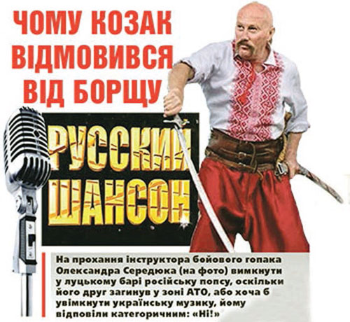 Нещодавно, зайшовши в Луцьку у кафе-бар «Савана», що на проспект╕ Грушевського, я запитав у оф╕ц╕анта: — Чи можна у вас швиденько перекусити? — Так, звичайно, – вв╕чливо в╕дпов╕в юнак. – Зараз об╕дня перерва, тож можете скористатись комплексним об╕дом, який виберете. Переглянувши запропонован╕ вар╕анти, я зупинився на другому комплекс╕ ╕ п╕шов мити руки. Уже сидячи за столом, почав оглядати ╕нтер’╓р бару. Попри прив╕тн╕сть персоналу та сучасний дизайн залу, враження псувала московська попса, що линула ╕з гучномовця. Репертуар «поющих трусов» почав мене дратувати, ╕ я чемно попросив оф╕ц╕анта перемкнути на укра╖нський канал або поставити диск з укра╖нськими мелод╕ями. — Не можна, – р╕зко в╕дпов╕в молодик. – У нас програма така. — Ну тод╕ вимкн╕ть ╖╖ зовс╕м, – пропоную ╕нший вих╕д. — Не можна, – вперто стояв на сво╓му оф╕ц╕ант. – Шеф наказав, щоб музика грала пост╕йно. — Послухайте, я не можу спок╕йно реагувати на цю попсу московську, у мене на сход╕ загинув друг-козак 35-ти рок╕в, – пробую пояснити свою позиц╕ю. – Вимкн╕ть ╖╖ або поставте щось укра╖нське. — Не можна! – категорично в╕др╕зав кельнер. — Ну, тод╕ я не ╖стиму вашого борщу, в╕н мен╕ к╕лком сто╖ть у горл╕. Я не буду у вас об╕дати ╕ принес╕ть мен╕ книгу скарг. «Книгу» принесли. Я д╕став самописку ╕ почав писати скаргу, хоч ╕ розум╕в, що це буде «холостим постр╕лом», адже сам шеф установив так╕ правила гри. Невдовз╕ за спиною почув ж╕ночий вереск ╕з кухн╕: — То що, я буду за той борщ грош╕ платити? Нехай ╖сть ╕ йде соб╕. — В╕н в╕дмовля╓ться, – стиха мовив оф╕ц╕ант. — Тод╕ викликайте охорону! – не угавала ж╕нка. Справд╕, за хвилину з’явилася охорона в бронежилетах, з кийками при боц╕. Два кремезн╕ хлопц╕ в ун╕форм╕ з шевронами на рукавах «Кобра» п╕д╕йшли до барно╖ ст╕йки ╕ запитали: — Викликали? Хто тут буянить? — Он той мужик з оселедцем! – вказали у м╕й б╕к. – Не хоче борщ ╖сти, який замовив. То що, я маю платити за нього? – обурювалася ж╕нка ╕з кухн╕. Настала тиша. Хвилину-другу охоронц╕ стояли розгублен╕, не знаючи, що робити. Н╕хто ж не буянить, не дебоширить, нав╕ть не матюка╓ться. Чолов╕к, на якого вказали, чемно сидить за столиком ╕ спок╕йно щось пише. ╤нциденту нема╓, хул╕ганських д╕й не пом╕чено, тому й замешкались, мабуть, розм╕рковуючи, як тут вчинити. Та згодом п╕д╕йшли до столика, за яким я сид╕в. — Прошу пана, – звернувся один, мабуть, старший. – Чому ви не хочете ╖сти борщу, коли замовили? — Мен╕ взагал╕ перехот╕лося тут об╕дати, бо умови в бар╕ антиукра╖нськ╕! – мовив я, стримуючи роздратування. – Московська попса, яка р╕же слух, виклика╓ у мене духовний та енергетичний спротив. У мене друг-козак загинув на сход╕ в╕д рук сепаратист╕в. Мен╕ в╕д т╕╓╖ московсько╖ попси н╕чого в горло не йде. Х╕ба можна спок╕йно об╕дати, коли тут така нездорова атмосфера? Як сказала народна артистка Мар╕я Бурмака, «рос╕йська попса – це та м’яка сила, яка заволод╕ла розумом середньостатистичного укра╖нця. ╤ де ця музика побутувала, де укра╖нськ╕й п╕сн╕ м╕сця не було, там зараз рос╕йськ╕ в╕йська». ╤ нав╕ть у нас, на Волин╕, де зародилася УПА, у маршрутках повсякчас чути рос╕йську попсу на рад╕охвилях «Наше рад╕о». Н╕би нема╓ укра╖нських канал╕в, таких, як «ФМ Галичина», «Рад╕о Луцьк», та ╕нших. Заходиш у бар – 