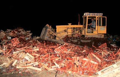 Полуницю визнали санкц╕йною, ╖╖ вилучили й розчавили бульдозером в Темрюку на пол╕гон╕ ТПВ (ТБО, твердих побутових в╕дход╕в).