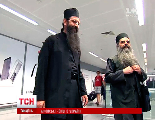 Але в╕зит таки в╕дбувся. В╕дбулися зустр╕ч╕ на найвищому р╕вн╕ – з прем'╓ром, м╕н╕страми, головою Верховно╖ Ради. Головне, ченц╕ прочитали лекц╕ю для в╕рян у нецерковн╕й недержавн╕й орган╕зац╕╖ – В╕дкритому православному ун╕верситет╕ Свято╖ Соф╕╖ Премудрост╕. Народ прийшов, люди слухали святогорц╕в, ставили запитання ╕ отримали в╕дпов╕д╕. Москв╕ не подобаються ц╕ прям╕ контакти. Адже афонськ╕ старц╕ к╕лька дн╕в сп╕лкуються з укра╖нськими священиками, укра╖нськими чиновниками, вивчають укра╖нське православ'я, яке прийшло на цю землю понад тисячу рок╕в тому. Тож афонськ╕ старц╕ вражен╕ прийомом в Укра╖н╕. Останн╕ десятил╕ття укра╖нц╕в переконували, що Афон – пророс╕йський. ╤ сьогодн╕ православн╕ сайти сус╕дньо╖ кра╖ни рясн╕ють пов╕домленнями про святкування тисячол╕ття присутност╕ руських монах╕в на Афон╕. Москва – центр святкування, Петербург – на другому м╕сц╕. Под╕╖ мають бути пишними, урочистими, на державному р╕вн╕.