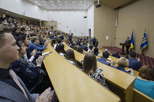 Президент Укра╖ни Петро Порошенко зустр╕вся з╕ студентами-╕сториками у Ки╖вському Нац╕ональному ун╕верситет╕ ╕м. Т. Г. Шевченка та под╕лився власним баченням рол╕ ╕стор╕╖ та ╕сторик╕в в житт╕ сучасно╖ Укра╖ни. Зустр╕ч була присвячена 150-р╕ччю з дня народження Голови Центрально╖ Ради Укра╖нсько╖ народно╖ республ╕ки (1917-1918 рок╕в), видатного ╕сторика Михайла Грушевського. Глава держави також нагородив переможц╕в проекту «LIKБЕЗ. ╤сторичний фронт» та в╕дпов╕в на запитання присутн╕х на зустр╕ч╕. Звертаючись до студент╕в Президент наголосив, що ця зустр╕ч "╓ не лише вшануванням постат╕ Михайла Грушевського, а й початком марафону ╕з в╕дзначення стор╕ччя под╕й Укра╖нсько╖ нац╕онально╖ революц╕╖ 1917 – 1921 рок╕в". Президент зазначив, що Михайло Грушевський став першим, хто встановив очевидну неперервн╕сть ╕сторичного розвитку ╕ дов╕в, що сучасна Укра╖на ╜рунту╓ться на "тисячол╕тн╕й традиц╕╖ державотворення". Петро Порошенко нагадав слова вченого про те, що "укра╖нський народ, в пор╕внянн╕ з народом великоруським, ╓ народом зах╕дно╖ культури, одним з найб╕льш багатих сх╕дними ор╕╓нтальними впливами, але все-таки по складу сво╓╖ культури ╕ свого духу - ╓ народом зах╕дним". Глава держави особливо п╕дкреслив важлив╕сть ╓дност╕ та вза╓мно╖ п╕дтримки укра╖нц╕в сьогодн╕ та нагадав траг╕чн╕ под╕╖ Укра╖нсько╖ нац╕онально╖ революц╕╖ початку ХХ стол╕ття, коли брак згуртованост╕ всередин╕ укра╖нства призв╕в до поразки та втрати державност╕. Сьогодн╕ ж укра╖нське сусп╕льство об’╓дналося в протид╕╖ ворогу ╕ стало на захист нашо╖ держави, наголосив Петро Порошенко. "Зверн╕ть увагу: наск╕льки вражаючу ╓дн╕сть демонстру╓ нин╕ укра╖нський народ, я дякую Богов╕, що укра╖нц╕ – мудрий народ ╕ яку вражаючу ╓дн╕сть вони зараз демонструють", - сказав в╕н. Укра╖нський пол╕тичний клас навпаки - ╓ роз’╓днаним та его╖стичним, зауважив Президент, ╕ "не в╕дчува╓ потреби з огляду на зовн╕шн╕ обставини регулювати й тримати в межах розумного градус пол╕тично╖ конкуренц╕╖". Президент зазначив, що Москва завжди користалася в сво╖х ╕нтересах перевагами демократичних систем в сус╕дн╕х державах, щоб поглинути ╖х: починаючи з час╕в Новгорода та Реч╕ Посполито╖, завершуючи Центральною ╢вропою п╕сля Друго╖ св╕тово╖. Розхитування ситуац╕╖ в наш╕й держав╕ зсередини зараз також ╓ одн╕╓ю ╕з над╕й рос╕йського агресора, одним ╕з перев╕рених способ╕в г╕бридно╖ в╕йни Кремля проти Укра╖ни, також зауважив в╕н. Зважаючи на це, для укра╖нц╕в ╕стор╕я Укра╖ни ╓ фундаментальною галуззю знань, вона ╓ основою для п╕дтримки нац╕онально╖ ╕дентичност╕ та патр╕отизму, особливо наголосив Глава держави зазначивши, що робить усе можливе для збереження ╕ розвитку пол╕тики нац╕онально╖ пам’ят╕. "Я дуже пишаюся тим наск╕льки швидко зм╕ню╓ться кра╖на", - сказав Петро Порошенко та нагадав про проведення масштабно╖ декомун╕зац╕╖, в╕дновлення справедливост╕ щодо тих, хто присвятив сво╓ життя боротьб╕ за самост╕йн╕сть та соборн╕сть Укра╖нсько╖ держави, а також т╕ факти, що День перемоги над нацизмом у Друг╕й св╕тов╕й в╕йн╕ та День захисника Укра╖ни нин╕ в╕дзначаються за власним, укра╖нським сценар╕╓м. На переконання Петра Порошенка для укра╖нських ╕сторик╕в "нар