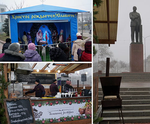 На фото: Р╕здво на площ╕ Лен╕на у С╕мферопол╕. Тут ╕ вертеп, ╕ пересувний ресторан, ╕ вождь-безбожник п╕д рестораном… Фото В. Качули