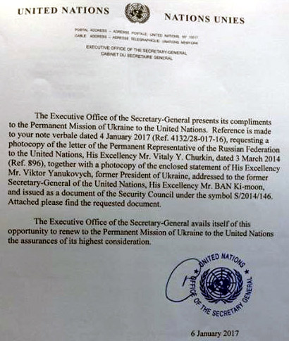 УКРА╥НА ОТРИМАЛА В╤Д ООН ДОКАЗ ДЕРЖЗРАДИ ЯНУКОВИЧА