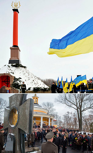 Президент Петро Порошенко разом з дружиною Мариною Порошенко вшанували пам’ять оборонц╕в укра╖нсько╖ державност╕, як╕ загинули у бою поблизу селища Крути. Як пов╕домля╓ прес-служба глави держави, президентське подружжя поклало кв╕ти до пам’ятного хреста на Аскольдов╕й могил╕ у Ки╓в╕, де були похован╕ в╕дважн╕ студенти. Присутн╕ вшанували пам'ять загиблих хвилиною мовчання. У заходах також взяли участь голова Верховно╖ Ради Андр╕й Паруб╕й, члени Каб╕нету М╕н╕стр╕в, мер Ки╓ва В╕тал╕й Кличко. У зверненн╕ до укра╖нського народу у День пам’ят╕ Геро╖в Крут Петро Порошенко в╕дзначив, що геро╖чний б╕й п╕д Крутами назавжди вписаний на скрижал╕ нац╕онально╖ ╕стор╕╖ - передус╕м як приклад волелюбност╕ та незламност╕ укра╖нського народу. (Повний текст звернення читайте нижче). http://www.unian.ua