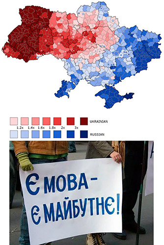 З причин, про як╕ не раз згадував у сво╖х попередн╕х статтях, мовна пол╕тика Укра╖нсько╖ держави, нав╕ть з осягненям формально╖ незалежност╕ в 1991 роц╕, упродовж чверт╕ стол╕ття, що минув з того часу, ╕ дал╕ в╕дтворювала кластери почилого в боз╕ Союзу РСР. Вони ж, стосовно мовно╖ сфери, були заточен╕, як тепер модно казати, на дом╕нування мови м╕жнац╕онального сп╕лкування Союзу, а саме, московсько╖ мови. ╤ робилося те продумано, ц╕леспрямовано ╕ наполегливо. Радянська партноменклатура, яка п╕сля розвалу СРСР залишилася при влад╕ практично у вс╕х колишн╕х його республ╕ках — тепер формально незалежних державах — св╕домо чи п╕дсв╕домо ╕ дал╕ довгий час витягувала ши╖ до Москви. Хтось стражда╓ на ту бехребетн╕сть ╕ по сей день. В тому, власне, нема╓ н╕чого дивного, якщо пам'ятати, що вс╕ органи управл╕ння сов╓цькою ╕мпер╕╓ю знаходились саме там, а в республ╕ках — на м╕сцях, як тод╕ казали — були лише слухнян╕ виконавц╕ вол╕ кремл╕вських вожд╕в. Отож, ц╕ ╕дейн╕ раби, нав╕ть п╕сля розвалу плота, на якому тарганились до туманно╖ фатаморгани, ╕ дал╕, кожен на сво╖й колод╕, продовжував веслувати усл╕д тим, хто залишався царем в ╖х убогих головах. ╤ м╕цно прикл╓╓ний “общепонятный язык” був одним з визначальних з'╓днувальних елемент╕в того притяж╕ння. Якщо згадати, що московськ╕й мов╕ в╕дводилась свого часу чи не головна роль в формуванн╕ з р╕зношерстних нац╕ональностей ново╖ сп╕льноти — ╓диного сов╓цького народу, якщо знати, що на момент розпаду Союзу б╕льш чи менш значний прошарок то╖ зманкуртизовано╖ сп╕льноти вже ╕снував в кожн╕й з новоявлених республ╕к, якщо не закривати оч╕, при тому, на б╕льш н╕ж в╕дверт╕ плани потомственних “собирателей земель”, в яких змосковленим манкуртам в╕дводилась роль троянського коня, то можна зрозум╕ти, чому московська мова в незалежн╕й Укра╖н╕ не те, що не втратила сво╖х позиц╕й за роки Незалежност╕, а десь ╕ зм╕цнила ╖х. Дехто з нащих поводир╕в ще плекав над╕╖ на в╕дродження тако╖ звично╖ комунально╖ казарми — чи то в ╕постас╕ СНД, чи Союзу митного, п╕дживлюючи мовну шизофрен╕ю з цих м╕ркувань, а хтось, тим часом, з п╕дказки цин╕чних пол╕ттехнолог╕в, вже повним ходом користався штучно створеною, фактично нав'язаною, мовною проблемою задля отримання особистих пол╕тичних вигод в передвиборчих перегонах ╕ не лише в них. Облудна теза про ╕сторичну обумовлен╕сть ╕снування московсько╖ мови на теренах Укра╖ни поширювалася серед широко╖ публ╕ки вс╕ма можливими засобами, включно з╕ звертанням до творчост╕ Миколи Гоголя та Тараса Шевченка. Здавалося, що ж тут можна заперечити, якщо нав╕ть класики укра╖нсько╖ л╕тератури купалися в мор╕ “великого русского слова”... От, лиш, чи мали вони ╕нший виб╕р? Шевченко дов╕в, шо виб╕р ╓, але заплатив за те надто велику ц╕ну. Тут варто розум╕ти ще один, надзвичайно сутт╓вий аспект: московська мова не запанувала на наших теренах в результат╕ якихось ╖╖ надзвичайних природних переваг. Вона була насильно прищеплена до здорового т╕ла нац╕╖, вивищувалась за рахунок пригн╕чення мови автохтонно╖. Справа нав╕ть не в тому, що це була мова метропол╕╖, мова малорос╕йсько╖ правлячо╖ верх╕вки. Справа в т╕м, що вся житт╓д╕яльн╕сть ╕мпер╕╖ в╕дбувалась в сфер╕ московсько╖ мови. Найперше ж