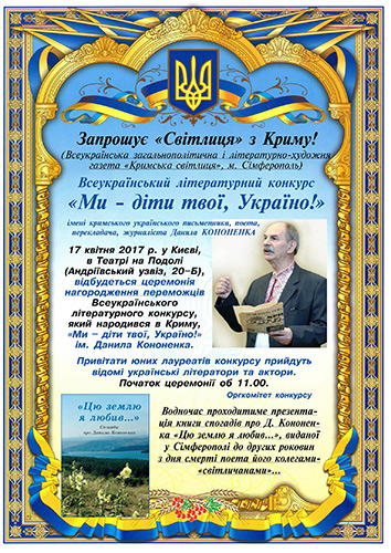 ВСЕУКРА╥НСЬКИЙ Л╤ТЕРАТУРНИЙ КОНКУРС «МИ – Д╤ТИ ТВО╥, УКРА╥НО!» ╤МЕН╤ ДАНИЛА КОНОНЕНКА НАЗИВА╢ ПЕРЕМОЖЦ╤В!