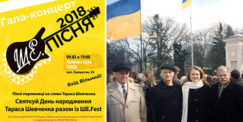 Всеукра╖нський п╕сенний конкурс «Ше.П╕сня», присвячений 204-й р╕чниц╕ народження Тараса Шевченка, оголосив список переможц╕в цьогор╕чного в╕дбору. Цього року конкурсанти подавали заявки з Ки╓ва та област╕, Черн╕г╕вщини, Хмельниччини, В╕нниччини, Харк╕вщини, ╤вано-Франк╕вська ╕ нав╕ть з Криму. В десятку найкращих ув╕йшли: - гурт "Mysterya" з композиц╕╓ю "╤з-за гаю"; - гурт "TaRuta" з композиц╕╓ю "Дн╕пр широкий"; - гурт "Брати Стан╕слава" з композиц╕╓ю "╤ золото╖, й дорого╖"; - гурт «СонЦе» з композиц╕╓ю «Плач Ярославни»; - Володимир Пироженко з композиц╕╓ю "Х╕ба самому написать"; - Юр╕й Гусарук з композиц╕╓ю "Св╕та╓"; - Богдан Тарасюк з композиц╕╓ю "Наймичка"; - дует М╕хи Нев╕домського ╕ Юл╕╖ Качули з композиц╕╓ю "Гоголю"; - вокальний ансамбль "Яг╕дки" з композиц╕╓ю "Од села до села"; - дитячий хор "Пектораль" з композиц╕╓ю "Мар╕я". Хто яке м╕сце у сво╖й ном╕нац╕╖ пос╕в ╕ чия п╕сня, на думку компетентного жур╕, виявилась найкращою, ви д╕зна╓тесь 9 березня на гала-концерт╕ "Ше.П╕сня-2018", що в╕дбудеться в колонн╕й зал╕ КМДА. *** «Тарас Шевченко одночасно ген╕альний ╕ простий. Наш конкурс спрямований на те, щоб дедал╕ ширша аудитор╕я в╕дчувала цю ген╕альн╕сть ╕ простоту Кобзаря. Цього року ми скасували обмеження щодо виключно акустичних композиц╕й, а ще зробили три ном╕нац╕╖: «Гурти», «Барди» ╕ «Вокальн╕ колективи». ╤ ма╓мо результат — цьогор╕чн╕ ф╕нал╕сти конкурсу показали нам д╕йсно як╕сну укра╖нську музику», — розпов╕в один з орган╕затор╕в конкурсу ╤гор Двигало. Оц╕нювали конкурсант╕в в╕дом╕ укра╖нськ╕ музиканти та культурн╕ д╕яч╕: л╕дер гурту «Т╕нь Сонця» Серг╕й Василюк, л╕дер гурту «Верем╕й» В╕тал╕й Кал╕н╕ченко, укра╖нський хоровий диригент, заслужений д╕яч мистецтв Укра╖ни, засновник ╕ перший кер╕вник хору «Хрещатик» Лариса Бухонська, укра╖нський бандурист, народознавець, рок-музикант, композитор Живосил Лютий, засновник конкурсу «Ше.П╕сня» та фестивалю «Ше.Fest» Юл╕я Капшученко-Шумейко. Нагада╓мо, що в лютому в╕дбувався конкурс на найкраще виконання п╕сень на слова Шевченка. Це вже трет╕й конкурс фестивалю Тараса Шевченка, за результатами якого щороку традиц╕йно в╕дбува╓ться запис зб╕рник╕в п╕сень «Ше.П╕сня». Партнери конкурсу – «Студентська Свобода» та «Л╕га молод╕ Укра╖ни»; за п╕дтримки фракц╕╖ ВО «Свобода» в Ки╖вськ╕й м╕ськ╕й рад╕ (депутат Юр╕й Сиротюк) та народного депутата Укра╖ни Юр╕я Левченка. Орган╕затори: Фестиваль Тараса Шевченка «Ше.Fest» та «В╕део.Кобзар». Ведучий гала-концерту — Олександр Висоцький. Дата проведення гала-концерту – 9 березня. Початок о 19.00. Адреса: вул. Хрещатик,36 (Колонна зала КМДА, 2-й поверх) ВХ╤Д В╤ЛЬНИЙ! *** Почути п╕сню, з якою виступлять на гала-концерт╕ ф╕нал╕сти Юл╕я Качула ╕ М╕ха Нев╕домський, можна за посиланням: https://www.youtube.com/watch?v=k6e_mrQKMmw *** На фото з арх╕ву «КС»: Юл╕я Качула з╕ «св╕тличанами» б╕ля пам'ятника Тарасу Шевченку у С╕мферопол╕