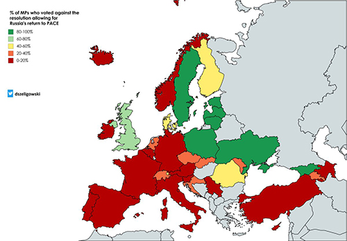 Вчорашн╕м веч╕рн╕м голосуванням (118 голос╕в "за", 62 "проти", 10 "утрималися") з москов╕йсько╖ делегац╕╖ в ПАРЕ було знято санкц╕╖, внасл╕док яких ╖╖ було позбавлено право голосу ще в╕д кв╕тня 2014 року, п╕сля анекс╕╖ Криму. Тод╕, на знак протесту, москов╕йська делегац╕я в╕дмовилася бути присутньою в сес╕йному зал╕ ПАРЕ. Власне, н╕чого неоч╕куваного у прийнятт╕ тако╖ резолюц╕╖ нема╓. Готувалася вона упродовж досить тривалого часу, найперше, за закритими дверима Ком╕тету М╕н╕стр╕в. Якщо ж пригадати ще листопадов╕ 2016 року зусилля тод╕шнього голови ПАРЕ пана Аграмунта, натхненн╕, як кажуть, щедрою рукою неоф╕ц╕йного держдумського «лаврова», якщо замислитися над тим, що та щедра рука, черпаючи з далеко неб╕дного «Рос╕йського фонду миру» , очолюваного ним же, могла оплачувати не лише той халявний пол╕т пана Педро до Сир╕╖, що вил╕з йому боком, не лише екскурс╕╖ марг╕нальних европейських пол╕тикан╕в до анексованого Криму, а й лоб╕ювати ╕нтереси Москов╕╖ у ПАР╢, то ма╓мо розум╕ти, що результати голосування були досить передбачуваними. Тим не менш, повернення москов╕йсько╖ делегац╕╖ в сес╕йну залу Европарламенту набуло сенсац╕йного характеру. Чи не вперше держав╕-члену РЕ, позбавлен╕й права голосу за порушення засадничих принцип╕в орган╕зац╕╖, повертали те право, попри те, що вона не лише не усунула порушення, що спричинило покарання, але й не виявила жодного нам╕ру визнати свою вину. Мова зв╕сно ж про анекс╕ю Криму, про розпалювання та ведення прокс╕-в╕йни (proxy warfare – в╕йна чужими руками) на сход╕ Укра╖ни. Як вже було згадано, будучи позбавлена в кв╕тн╕ 2014-го права на голосування, не добившись його в╕дновлення на початку 2015 року, Москва призупинила участь сво╓╖ делегац╕╖ в сес╕ях ПАРЕ, а з 2017 року припинила платити внески. О, т╕ несплачен╕ внески! Не встигли й оком кл╕пнути, а вже тут ╕ там з’явилися консп╕ролог╕чн╕ теор╕╖ про те, що саме бажання европейц╕в отримати заборгован╕ за ц╕ роки грубеньк╕ кошти ╕ ╓ ключем до тр╕умфального повернення Москов╕╖ до ПАРЕ. Бо ж, мовляв, хто платить, той ╕ замовля╓ музику, а часто й танцю╓ проплачених. Жодним чином не п╕ддаючи сумн╕ву бажання ПАРЕ отримати заборговане (цю вимогу вже й виставлено в ряду к╕лькох ╕нших, серед яких, зокрема, й зв╕льнення захоплених в район╕ Керченсько╖ протоки наших моряк╕в), з нашого боку було б надто на╖вним сприймати таке пояснення всерйоз, знаючи, що ця орган╕зац╕я ц╕лком нормально функц╕онувала без жодних московських вливань упродовж майже п╕встол╕ття – в╕д 1949 до 1996 року. Отже, ма╓ ╕снувати якесь ╕нше пояснення тому, що попри гвалтовну нев╕дпов╕дн╕сть сво╓╖ в╕дверто агресивно╖ пол╕тики статуту Ради Европи, Москов╕я знову в ПАРЕ. Може вона таки поступилась чим? Може Крим вже не п╕д ╖╖ владою? Може вже не шугають над його пляжами з ревом ╕ свистом бойов╕ л╕таки з причепленими п╕д пилонами ракетами? Може зв╕льнено з в’язниць укра╖нських громадян – в╕йськовополонених, цив╕льних ос╕б, захоплених як в Криму, так ╕ на сход╕ Укра╖ни? Може Кремль вже вив╕в сво╖х найманц╕в з Донбасу, не лл╓ там щоденно кров? - Н╕, - кажете? Таки н╕. Бо ж – он, самовпевнено посм╕хаючись, вже згадуваний вище майстер кулуарно╖ дипломат╕╖ переможно заявля╓ п╕д телекамери про те, що Крим був, ╓ ╕ залишиться п╕д Москво