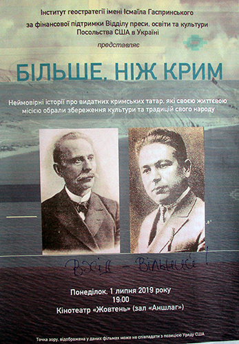 ╤нститут геостратег╕╖ ╕мен╕ ╤сма╖ла Гаспринського, за ф╕нансово╖ п╕дтримки В╕дд╕лу преси, осв╕ти та культури Посольства СЩА в Укра╖н╕,  реал╕зував проект «Б╕льше, н╕ж Крим. Велик╕ люди маленького народу». В╕дзнято 10 документальних ф╕льм╕в, геро╖ яких сво╓ю житт╓вою м╕с╕╓ю обрали збереження культури ╕ традиц╕й свого кримськотатарського народу, боротьбу за його право в╕льно жити на сво╖й р╕дн╕й земл╕ – в Криму. Разом вони дають в╕дпов╕д╕ на важлив╕ питання нашого часу: «Як кор╕нним народам зберегти себе?», «Як т╕льки одна людина може зберегти традиц╕╖ свого народу?», «Як перес╕чна людина ста╓ надзвичайною?»