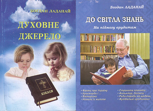 При╓мна неспод╕ванка оч╕кувала на мене. Нещодавно отримав поштою бандероль в╕д Богдана Ладаная, в╕домого журнал╕ста з Бойк╕вщини (с. М╕сткович╕ Самб╕рського району). А у н╕й — дв╕ книги автора «Духовне джерело» ╕ «До св╕тла знань», з теплими автографами, щирими побажаннями та ще й лист, такий же теплий ╕ щирий. З Богданом Ладана╓м ми знайом╕ рок╕в 7-8, але т╕льки заочно. Не раз читав його дописи у газетах, журналах. А в╕н, виявля╓ться, читав мо╖ журнал╕стськ╕ та л╕тературн╕ спроби у ЗМ╤ (нав╕ть друкувалися ╕ друку╓мося в одних ╕ тих же виданнях), ╕ це, коли я ще був школярем, ╕ коли вже став студентом-журнал╕стом. Завдяки сучасним комун╕кац╕ям не так уже й важко знайти один одного. Богдан Ладанай першим «вийшов» на мене. Були телефонн╕ розмови. Ск╕льки ц╕кавих порад, добрих побажань, сл╕в заохочень до творчост╕ почув в╕д нього, в╕дчув моральну п╕дтримку! Отож вир╕шив п╕дготувати огляд двох над╕сланих мен╕ книг. Та спочатку к╕лька сл╕в про автора. Скористаюся б╕ограф╕чними дов╕дками, надрукованими саме у цих виданнях. * * * Богдан Ладанай - профес╕йний журнал╕ст. Понад 40 рок╕в в╕ддав газетярськ╕й справ╕ як штатний прац╕вник, зокрема газети «Новини Самбора». Член Нац╕онально╖ сп╕лки журнал╕ст╕в Укра╖ни. Переможець ╕ призер багатьох творчих конкурс╕в серед журнал╕ст╕в ╕ друкованих ЗМ╤ на обласному ╕ Всеукра╖нському р╕внях. Секретар╕ат НСЖУ нагородив його почесним знаком НСЖУ. На державному р╕вн╕ йому присво╓но почесне звання «Заслужений журнал╕ст Укра╖ни». Упродовж десятир╕ч в╕н активно сп╕впрацю╓ з багатьма редакц╕ями обласних та Всеукра╖нських газет ╕ журнал╕в, а також з пер╕одикою укра╖нсько╖ д╕аспори у США, Канад╕, Австрал╕╖... Нин╕ його матер╕али часто друкуються в газетах «Благов╕ст», «Добрий господар», журнал╕ «Перець. Весела республ╕ка». Автор 14 книжок для ерудит╕в, дв╕ з яких перевидано. Загальний тираж книжкових видань - 20 тисяч прим╕рник╕в. Богдан Ладанай - у числ╕ 100 майстр╕в-см╕хотворц╕в Укра╖ни, чий творчий доробок видрукувано в колективному зб╕рнику «Сатирична сотня д╕╓...» (2016 р.). Гарних результат╕в досягнув у 2016 ╕ 2017 рр. Його удосто╓но двох нагород: у м. Червоноград╕ (Льв╕вська обл.) став лауреатом л╕тературного конкурсу ╕м. Володимира Дроцика та дипломантом I ступеня III Всеукра╖нського л╕тературного конкурсу ╕м. Леся Мартовича (м. Жовква, Льв╕вщина). Роками ран╕ше його творч╕ доробки високо оц╕нили на л╕тературних конкурсах у Б╕л╕й Церкв╕ (Ки╖вська обл.), Коростен╕ (Житомирська обл.). В╕н ╓ лауреатом Всеукра╖нського творчого конкурсу «Укра╖нська мова - мова державна!». На основ╕ багатого ╕ р╕зноман╕тного матер╕алу книг Богдана Ладаная в закладах осв╕ти, культури, молод╕жних осередках орган╕зовують турн╕ри для км╕тливих ╕ допитливих - КВК, «Хочу все знати!» тощо. Займа╓ться наш автор ╕ громадською роботою. Обирався депутатом Самб╕рсько╖ районно╖ ради. Упродовж багатьох рок╕в - член оргком╕тету ╕ жур╕ Бойк╕вського л╕тературно-кра╓знавчого конкурсу ╕м. Мирона Утриска, який ма╓ статус Всеукра╖нського. У 2010 роц╕, коли в Турц╕ на Льв╕вщин╕ в╕дбувався Другий Св╕товий конгрес бойк╕в, Богдана Ладаная по╕меновано достойником «Золотого фонду Бойк╕вщини». Його ╕м'я внесено в Почесну книгу-альманах «Золотий фонд Бойк╕вщини». Невтом