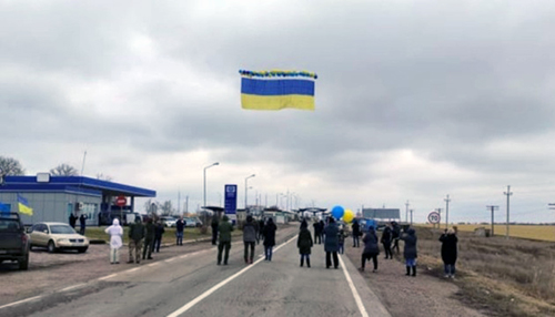 НА АДМ╤НМЕЖ╤ ЗАПУСТИЛИ ПРАПОР УКРА╥НИ З ПОСЛАННЯМИ ДЛЯ ЖИТЕЛ╤В ОКУПОВАНОГО КРИМУ