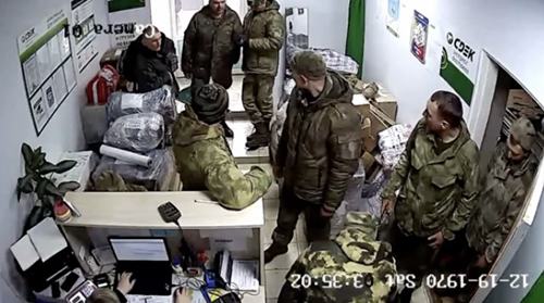 На в╕део у солдат╕в видно шеврони 56-го гвард╕йського десантно-штурмового полку ЗС РФ, який дислоку╓ться у Феодос╕╖ (Крим, тимчасово окупований РФ). Також в кадр╕ видно обличчя, номери телефон╕в ╕ адреси доставки солдат╕в ЗС РФ, як╕ грабували укра╖нськ╕ будинки ╕ людей.