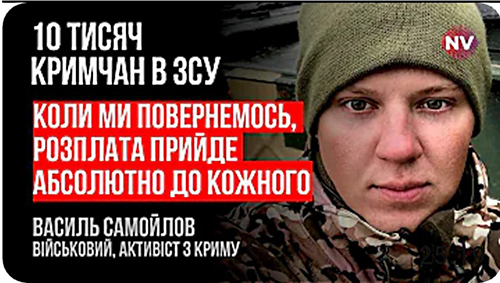 В цьому сенс╕ вразила заставка Рад╕о НВ до ╕нтерв'ю Олекс╕я Тарасова з уже згаданим Василем Самойловим (https://www.youtube.com/watch?v=I5IdyQlrBos). Якому розумас╕, хот╕лося б знати, спала на думку недолуга ╕дея намалювати гр╕зне попередження кримчанам, мовляв, начувайтеся: розплата прийде абсолютно до кожного? Це для ╕н╕ц╕ац╕╖ теплих почутт╕в м╕сцевого населення до укра╖нського в╕йська, до Укра╖ни в ц╕лому, чи як? Але ж пан Василь упродовж чи не вс╕╓╖ розмови не втомлювався наголошувати, що ма╓мо ставитися до мешканц╕в Криму як до укра╖нських громадян, якими вони ╕ ╓, а його попередження стосу╓ться лише попл╕чник╕в окупац╕йно╖ влади та колаборант╕в. Але ж в заставц╕ про колаборант╕в ан╕ гу-гу. ╢ здогад, що пишуть таке для хайпу, для кл╕кабельност╕. Але ж десь ╕ м╕зки мають вмикатися, х╕ба н╕?