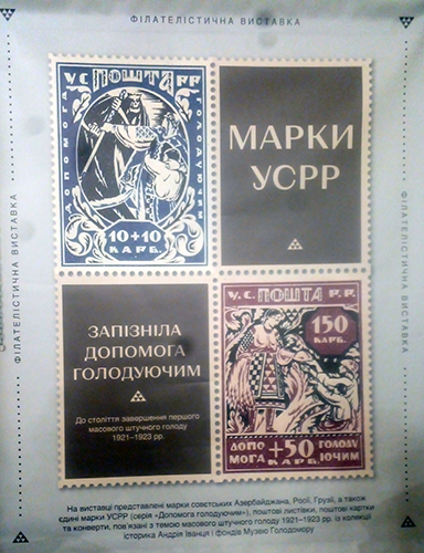 Пот╕м в╕дбулося в╕дкриття ф╕лател╕стично╖ виставки «Марки УСРР: зап╕зн╕ла допомога голодуючим». Тут представлено ф╕лател╕стичн╕ експонати ╕з власно╖ колец╕╖ Андр╕я ╤ванця та фонд╕в Нац╕онального музею Голодомору-геноциду.