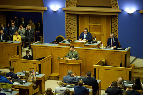 Укра╖на вир╕шила для себе тод╕: ми будемо битися. Kaitsetahe. В╕льн╕ нац╕╖ св╕ту п╕дтримали нас. Хтось п╕дтримав одразу, як Естон╕я, – ╕ я вдячний вам за це. Хтось – п╕зн╕ше, ╕ ми теж це ц╕ну╓мо. Зараз б╕льш╕сть св╕ту так чи ╕накше на боц╕ Укра╖ни, м╕жнародного права й проти рос╕йсько╖ геноцидно╖ агрес╕╖.