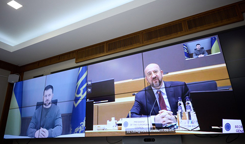 В╕таю вс╕х вас ╕ вдячний за ваше р╕шення щодо ф╕нансового ╕нструменту для нас, для нашого народу, для Укра╖ни. Ukraine Facility на суму 50 м╕льярд╕в ╓вро на чотири роки. Це ч╕ткий сигнал, що Укра╖на висто╖ть ╕ що ╢вропа висто╖ть.