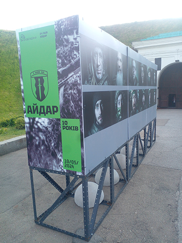 В одному ╕з прим╕щень Нац╕онального музею ╕стор╕╖ Укра╖ни в Друг╕й св╕тов╕й в╕йн╕ експону╓ться виставка “Айдар”. 10 рок╕в”. Експозиц╕я висв╕тлю╓ бойовий шлях 24-го окремого штурмового батальйону “Айдар” в╕д 2014 року до сьогодення.