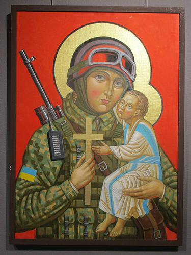 Сучасн╕ захисники, як╕ в╕дбивають напади рос╕йських в╕йськ, ╓ продовжувачами слави ╕ во╓нно╖ традиц╕╖ дружинник╕в Рус╕, козак╕в, Арм╕╖ УНР, УПА. Сучасн╕ во╖ни, як ╕ ╖хн╕ попередники, звертаються до Пресвято╖ Богородиц╕, аби вона вберегла ╖х на пол╕ бою.