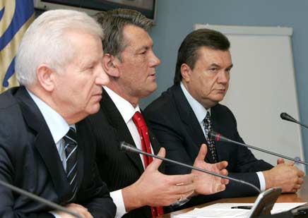 ПРЕЗИДЕНТ Укра╖ни 14 березня пров╕в робочу зустр╕ч з Прем'╓р-м╕н╕стром та Головою Верховно╖ Ради на ╖хн╓ прохання. Йшла мова про повернення до реал╕зац╕╖ положень Ун╕версалу нац╕онально╖ ╓дност╕, завдяки п╕дписанню якого В╕ктор Янукович очолив уряд. П╕д час зустр╕ч╕ обговорювались питання п╕двищення соц╕альних стандарт╕в та внесення зм╕н до Закону Укра╖ни "Про Державний бюджет Укра╖ни на 2007 р╕к", створення ╓дино╖ ком╕с╕╖ з державотворення, п╕дтримка кандидатури на посаду м╕н╕стра закордонних справ, внесено╖ Президентом Укра╖ни. Президент Укра╖ни наголосив на необх╕дност╕ д╕алогу в ст╕нах укра╖нського парламенту та зазначив, що левова частка вимог демократично╖ опозиц╕╖ в╕дпов╕да╓ як позиц╕ям Ун╕версалу, так ╕ баченню Президента Укра╖ни. За результатами зустр╕ч╕ досягнуто згоди щодо створення ╓дино╖ ком╕с╕╖ з вдосконалення державно╖ влади та п╕дготовки зм╕н до Конституц╕╖, яка буде представлена як опозиц╕╓ю, так ╕ б╕льш╕стю, позитивного голосування по кандидатур╕ м╕н╕стра закордонних справ та прийняття остаточного р╕шення щодо п╕двищення пенс╕й та зароб╕тних плат без зб╕льшення деф╕циту державного бюджету. У ход╕ зустр╕ч╕ Президент Укра╖ни зазначив, що демократична опозиц╕я представля╓ близько половини укра╖нського населення та парламенту, а тому розгляд ╖╖ вимог ╓ нагальним обов'язком як Президента, так ╕ уряду й парламентсько╖ б╕льшост╕.