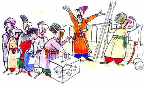 — Постривай! Зараз виберемо наших захисник╕в...