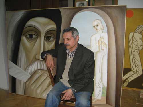 - Пане Олександре, а як назива╓ться ця робота? - «Нестор ╕ Сильвестр». Це наш╕ л╕тописц╕. Як в╕домо, Нестор писав, а Сильвестр редагував його записки. Ось бачите, тут Нестор знаходиться н╕би в кел╕╖, в т╕н╕, а ф╕гура Сильвестра осв╕тлена. ╤ сам в╕н н╕би св╕тлий, молодий, з великим творчим потенц╕алом, з в╕рою у св╕тле майбутн╓ Рус╕… З готовн╕стю на чистому суво╖ писати нову, св╕тлу ╕стор╕ю. Передумови для цього, як ми зна╓мо, були. Але ця мр╕я не зд╕йснилася – все перекреслила татаро-монгольська навала. А пот╕м – поляки, московити та ╕нш╕ загарбники… Але мр╕я була, щоб л╕топис був св╕тлим, щоб св╕тлою була наша укра╖нська доля. - Наш народ взагал╕ називають мр╕йливим. Без мр╕╖ важко жити. Але й «кувати» г╕дне сьогодення – справа не менш важлива. Тому з повагою ставлюся до цього проекту наших патр╕отичних художник╕в. То як вам вдалося «прорватися» в Донецьк? Як вас зустр╕чали? - Перед╕стор╕я така: першу виставку ми робили в Ки╓во-Могилянськ╕й академ╕╖. ╤ робили на п╕дтримку Ющенка. Н╕ музей укра╖нський, н╕ Сп╕лка не захот╕ли тод╕ нас п╕дтримати. А ки╓во-могилянц╕ за цю ╕дею рад╕сно ухопилися! Там же розм╕стився ╕ один ╕з штаб╕в Ющенка, а також його прес-центр. Виставка розпочала свою роботу в жовтн╕, а зак╕нчила в с╕чн╕ 2005 року. ╥╖ в╕дв╕дали тисяч╕ людей! Зокрема ╕ донеччани. Мен╕ в╕дразу передали, що вони хочуть запросити виставку у сво╓ м╕сто. Але оск╕льки основний тягар орган╕зац╕╖ ц╕╓╖ першо╖ виставки л╕г на мо╖ плеч╕, то я був виснажений до краю. Тому ╕ в╕дмовив донеччанам. - Ну, це характерно для нас, укра╖нц╕в. Хтось «тягне лямку», а допомогти н╕кому. ╤ багато добрих справ загинуло через це… - П╕д час друго╖ виставки мен╕ вже допомагали. ╤ я сам потелефонував у Донецьк. Вони були рад╕ прийняти нас, але виникли проблеми з транспортуванням картин. А вже в цьому роц╕ я домовився з М╕н╕стерством, ╕ нашу виставку оформили як пересувну. Оск╕льки ╖╖ приурочили до Дня Злуки, то зрозум╕ло, що варто було ╖╖ показати ╕ на Заход╕, ╕ на Сход╕. Донецький обласний художн╕й музей зараз очолю╓ Галина Володимир╕вна Чумак. До реч╕, вона наполовину гречанка, актив╕стка м╕сцевого грецького товариства. А донецьк╕ греки – родом з Криму, тому ╕ вона якоюсь м╕рою кримчанка… - Вона «дв╕ч╕ кримчанка», бо пр╕звище «Чумак» говорить про те, що ╖╖ предки по укра╖нськ╕й л╕н╕╖ ╖здили до Криму! Наша людина, одним словом… - Наша. Розмовляла з╕ мною гарною укра╖нською мовою, щиро в╕тала ╕дею нашо╖ ╕сторично╖ виставки. ╤ про депортац╕ю грек╕в багато розпов╕дала. ╤ хоч ставлення Галини Володимир╕вни було дуже прихильним, я трохи нервував, адже серед роб╕т був портрет командира УПА Шухевича, багато картин присвячених Голодомору або таких, що засуджують б╕льшовизм. А ще – знищення Батурина… Не вс╕ донеччани сприймають ц╕ теми. Але мо╖ побоювання виявилися безп╕дставними. Виставку прийняли майже так, як у Львов╕. Проблема була лише в одному – виставка… не вм╕щалася. Тод╕ прац╕вники музею зняли одну ╕з сво╖х експозиц╕й. Розм╕стили все. - Отже, донеччани п╕д╕йшли до справи чесно. Бо могли б, посилаючись на т╕сняву, портрет Шухевича якраз ╕ не вив╕шувати. - Н╕, донеччани не хитрували. Та й ми з самого початку розставили вс╕ крапки над «╕». У нас була картина Романа М╕н╕на «Загиблий шахтар». 