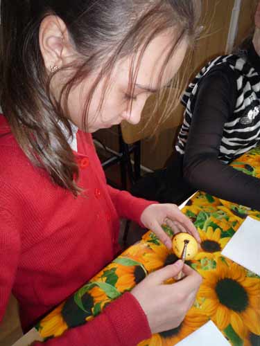 Як╕ гарн╕, дивн╕, чудов╕, прекрасн╕, чар╕вн╕, надзвичайн╕! Саме так висловлюються люди, коли бачать наш╕ учн╕вськ╕ весняно-великодн╕ писанки. Минулого року кореспондент «Кримсько╖ св╕тлиц╕» Катерина Криворученко влаштувала в редакц╕╖ курси писанкарства. Пост╕йн╕ читач╕ та дописувач╕ газети, учн╕ г╕мназ╕╖ № 9 м. С╕мферополя отримали можлив╕сть навчитися майстерност╕ писанкарства. А п╕сля зак╕нчення курс╕в нам нав╕ть видали посв╕дчення, що ми волод╕╓мо методикою розписування писанок. Дуже хот╕лося под╕литися отриманим досв╕дом з ╕ншими г╕мназистами. П╕сля нашо╖ розпов╕д╕ про незвичайн╕ курси виявилося дуже багато зац╕кавлених. ╤ ось з 1 березня цього року в наш╕й г╕мназ╕╖ розпочалася робота. Я нав╕ть не уявляла, що буде така велика к╕льк╕сть учн╕в, адже через велике навчальне завантаження д╕ти не мають в╕льного часу п╕сля урок╕в. Заздалег╕дь приготувавшись, я придбала писачки (╖х на замовлення готували справжн╕ майстри з╕ Львова), р╕зноман╕тн╕ фарби, в╕ск, параф╕нов╕ св╕чки та все необх╕дне для писанкарства. Спочатку учн╕ д╕зналися про ╕стор╕ю створення писанки, про в╕зерунки (оздоблюються писанки геометричним, рослинним, зооморфним: риби, птахи, зв╕р╕, людина, пейзажним орнаментами, християнськими символами) та кольори, притаманн╕ певному рег╕ону кра╖ни, про манери фарбування ╕ нанесення в╕зерунк╕в. Були вражен╕, що писанка – одна з╕ стародавн╕х форм укра╖нського народного розпису, в якому наш╕ пращури вт╕лювали сво╖ прагнення, в╕ру. Писанка – це символ весни, сонця, повернення природи до життя. Багато народ╕в св╕ту шанували яйце ╕ мали власну атрибутику його возвеличення. У деяких стародавн╕х народ╕в збереглися перекази, в яких яйце виступа╓ джерелом життя, св╕тла, тепла, нав╕ть зародком усього всесв╕ту. Д╕ти з захопленням уперше в житт╕ побачили справжн╕й писачок, наносили ним перш╕ узори, пробували розмальовувати. Уже перш╕ писанки вийшли дуже гарними. Деяк╕ учн╕ навчаються у художн╕й школ╕, тому ╖хн╕ писанки можна назвати справжн╕ми шедеврами. Ц╕каво, що захопились розписуванням писанок не т╕льки д╕вчата, але й хлопц╕. Курси в╕дв╕дували учн╕ р╕зних нац╕ональностей та р╕зно╖ в╕ри спов╕дання. Укра╖нськ╕ п╕сн╕, добрий настр╕й, позитивн╕ емоц╕╖ та величезне бажання мо╖х учн╕в творити справжн╕ дива – усе це було запорукою усп╕ху нашо╖ роботи. Напередодн╕ свята Великодня курси припинили свою роботу, д╕ти навчились писати та отримали посв╕дчення справжн╕х майстр╕в писанкарства. ╤ кожен з них продовжив писати вдома. А в каб╕нет╕ народознавства ми з учнями орган╕зували виставку писанок. Ус╕ вчител╕, однокласники, т╕, хто бачив роботи учн╕в, – були вражен╕ майстерн╕стю виконання. Витрачений власний час, позаурочна моя робота – це др╕бниц╕, пор╕вняно з величезним бажанням учн╕в писати, з задоволенням бачити щаслив╕ оч╕ д╕тей, як╕ вперше пробують себе у цьому стародавньому вид╕ мистецтва, ╖хн╓ захоплення в╕д першо╖ писанки, бажання створити нову, ще краще. Я спод╕ваюсь, що знання, набут╕ на курсах, учн╕ принесуть у родини. ╤ я переконана, що саме так цей вид мистецтва н╕коли не зникне, а навпаки буде поширюватись та розвиватись. Недаремно Олександр Довженко сказав: «Писанка – це неповторне багатство. Його треба берегти, як бе