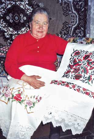 Сивiють i народжуються роки, минають столiття. Та вiчною ╓ i буде укра╖нська вишивка. Вона – наш давнiй символ, прадавня традицiя, то символ гостинностi i доброзичливостi. I хоч сьогоднi вже не зустрiнеш вишивку в нашiй оселi, ╖╖ сховали, як рiч не потрiбну, все ж вона супроводжу╓ нас усе наше життя. Зда╓ться дивним, але ще залишилися майстринi, якi творять шедеври ниткою та голкою. Цей талант подарований ╖м Господом. Уже протягом року я вивчаю мистецтво вишивання, а саме - вишивання рушникiв, орнаменти вишивки, ╖хн╓ значення. Але мо╖ знання були лише теоретичними, отже недостатнiми. Саме тому, я вирiшила дiзнатися, чи ╓ в нашому рiдному селищi справжнi вишивальницi, щоб дечому у них навчитися. За допомогою я звернулася до керiвника гуртка «Народознавство», вчителя укра╖нсько╖ мови та лiтератури Миронюк С. М. Ми дiзналися, що в нашому селищi мешка╓ талановита, творча жiнка, яка ╓ не просто вишивальницею, а майстринею, - Гризодуб Валентина Петрiвна. Домовились про зустрiч, i я з нетерпiнням чекала цього моменту дотику до живо╖ укра╖нсько╖ культури. Спочатку я хотiла б розповiсти про цю дивну жiнку. Народилася Гризодуб Валентина Петрiвна на Донеччинi, в селищi iмен╕ Ленiна, в тяжкий для кра╖ни час - 1933 рiк. Рукодiллям почала займатися з шести рокiв. Ще у дитячому садку вона вишила невеличкий рушничок швом, який показала ╖й тiтка. Далi Валентина Петрiвна вчилася цьому мистецтву сама. Вишивала переважно гладдю, тому що в Донецькiй областi вишивання хрестиком не було розповсюджене. В юнацькi роки пере╖хала до Криму. Тут вона вийшла замiж, народила дiтей – трьох дiвчат. Особливо тяжкими були пiсляво╓ннi роки, тому Валентина Петрiвна була змушена продавати сво╖ вишивки. В основному вона вишивала порть╓ри, серветки, скатертини. Валентина Петрiвна працювала у в’язальному цеху селища Нижньогiрського, але бiльшу частину свого життя працювала в торгiвлi. За словами мо╓╖ спiврозмовницi, улюбленим заняттям займалася уночi. Нин╕ стаж вишивальницi становить близько 70 рокiв. В ╖╖ доробку ╓ i рушники, i серветки, i скатертини, i подушки, i картини, i навiть два килими, якi, на жаль, не збереглися. Роботи майстринi виставлялися у районному Будинку культури. Вона брала участь у республiканських конкурсах, отримувала цiннi подарунки. Але особливо╖ уваги заслугову╓ вишитий Валентиною Петрiвною народний костюм. Повторення й чергування розеток, квiтiв, листя створило традицiйний орнамент. Оригiнальне по╓днання червоних, синiх, малинових, зелених, чорних ниток надало одягу певно╖ iндивiдуальностi. За цю роботу в Ки╓вi вишивальниця була удосто╓на звання Майcтра народно╖ творчостi, а також нагороджена дипломом. Ел╕на Тренькова, учениця 10–А класу Нижньог╕рсько╖ ЗОШ ╤–╤╤╤ ступен╕в № 2, актив╕ст МАН «Шукач».