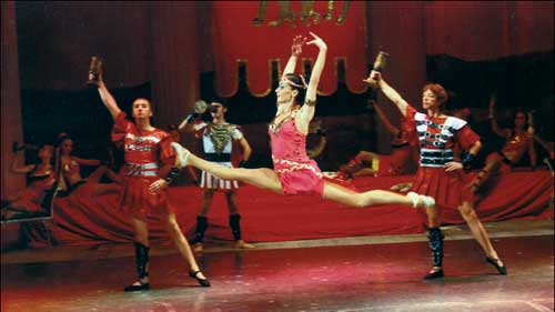 На фото: фрагмент з вистави «Пир Красса», на передньому план╕ — заслужена артистка Укра╖ни, лауреат прем╕╖ АРК М. Бережна