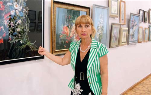 — Подив╕ться, в експозиц╕╖ чотири композиц╕╖ з бузком, — проходить з╕ мною по залу зав╕дувач науково-просв╕тницького в╕дд╕лу музею Св╕тлана Колесниченко. — А вс╕ виконан╕ по-р╕зному. В них в╕дчува╓ться натхнення ╕ нав╕ть в╕дт╕нки настро╖в ╖хн╕х автор╕в: зачарування красою природи, л╕рична н╕жн╕сть почутт╕в. — Вишивання ╓ одним ╕з найб╕льш поширених вид╕в народного мистецтва ╕ домашнього рукод╕лля, — продовжу╓ С. Колесниченко. — Його виникнення пов’язують з появою першого ст╕бка, зробленого перв╕сними людьми при скр╕пленн╕ шк╕ри вбитого мамонта шилом. З часом ╕з вдосконаленням основного ╕нструмента шиття — голки кам’яно╖, скляно╖ та металево╖ вишивка стала декоративним доповненням до нього. Матер╕али, з яких створювався одяг, р╕зноман╕тн╕стю не в╕дзначалися, а вишивка давала можлив╕сть зробити наряд особливим, не схожим на ╕нш╕. Тканини чи готов╕ вироби прикрашалися орнаментами або сюжетними малюнками за допомогою ниток, шовкових стр╕чок, б╕серу та ╕нших матер╕ал╕в ╕ голки, а нин╕ — вишивально╖ машини. Перш╕ вишивки були створен╕ в древньому Кита╖: на шовкових тканинах малюнок виконувався шовком-сирцем, ср╕бними та золотими нитками ╕ нав╕ть волоссям. З╕ Сходу ця техн╕ка рукод╕лля поширилася в Рос╕ю, Укра╖ну та ╕нш╕ кра╖ни. Кримську школу вишивки шовком заснувала б╕льш як п╕вв╕ку тому Галина Костянтин╕вна Масл╕кова. Вона була потомственою вишивальницею. ╥╖ бабуся, швачка, в ма╓тку батька поета Миколи Н╓красова, сидячи довгими зимовими вечорами за п’яльцями, «змальовувала» нитками на тканин╕ морозн╕ узори з в╕конних шибок. Цю с╕мейну традиц╕ю художньо╖ вишивки зберегла ╕ розвинула до найвищого р╕вня досконалост╕ Галина Костянтин╕вна. ╥╖ вишит╕ картини знаходяться в колекц╕ях р╕зних музе╖в св╕ту. ╥х подаровано кер╕вникам держав — Микит╕ Хрущову, Ф╕делю Кастро, багатьом видатним людям сучасност╕. Сво╓ вм╕ння майстриня багато рок╕в передавала учням у С╕мферопольськ╕й студ╕╖ художньо╖ вишивки, яка п╕сля об’╓днання в 2011 роц╕ з Феодос╕йською перетворилася в школу «Шовкова рапсод╕я». ╤ нин╕ вже без свого кер╕вника, яка п╕шла з життя в 2004 роц╕, б╕льше тридцяти ж╕нок, ╖╖ учениць, розкриваються в н╕й як творч╕ особистост╕ в р╕зних напрямках живопису голкою. На виставц╕ в музе╖ демонстру╓ться понад в╕с╕мдесят ╖хн╕х рукотворних полотен р╕зного формату — в╕д великого до найменшого. Б╕льш╕сть ╕з них — це вишит╕ коп╕╖ картин ╤. Шишк╕на, В. Сур╕кова, В. Пол╓нова, Рафаеля та ╕нших в╕домих укра╖нських, рос╕йських та заруб╕жних художник╕в: портрети, натюрморти, пейзаж╕ в ус╕ пори року та рел╕г╕йн╕ мотиви. За сюжетами з морськими видами Криму можна в╕ртуально подорожувати Чорноморським узбережжям, побувати б╕ля п╕дн╕жжя Аю-Дагу ╕ п╕днятися на г╕рський масив Ечк╕-Даг. А як╕ барвист╕ розсипи вишитих кв╕т╕в: вишуканих троянд ╕ простих польових ромашок ╕з вкрапленнями серед зелен╕ трав одиничних л╕л╕й та ╕рис╕в, б╕лих магнол╕й на голубому фон╕, з╕браних у пишн╕ букети у вазах, колб╕ з фруктами, соняшниками, гарбузом… Залюбу╓шся! За п╕вв╕ку картинно╖ вишивки майстри осво╖ли в школ╕ вс╕ ╖╖ жанри. Одна з найдосв╕дчен╕ших з них — Л╕л╕я Волянська, кер╕вник С╕мферопольсько╖ студ╕╖, лауреат четвертого ╕ п’ятого республ