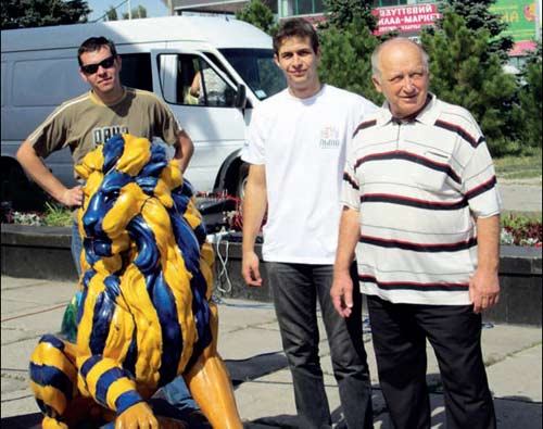 На фото: мар╕упольськ╕ просв╕тяни б╕ля льв╕вського лева (праворуч - А. Мороз)