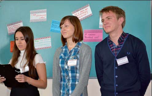 На фото: студенти ╤ курсу СМГУ Дар’я Дорохова, Л╕за Плотникова, Серг╕й Лемешко