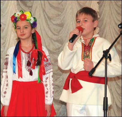 На фото автора: Вихованц╕ г╕мназ╕╖ № 7 Анастас╕я Пшеничних та Валентин Чубун зачарували виконанням п╕сн╕ «Ми п╕дем, де трави похил╕»
