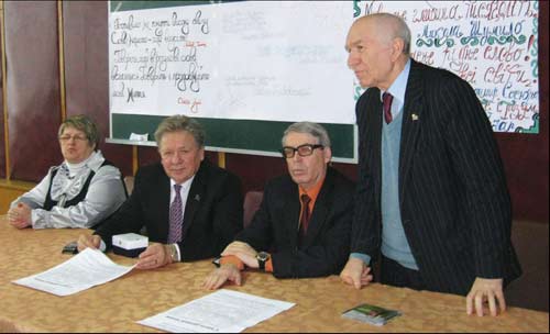 На фото: Василь Василашко (крайн╕й праворуч) на творч╕й зустр╕ч╕ до Дня р╕дно╖ мови у Товариств╕ «Знання» Укра╖ни 21 лютого 2013 р.