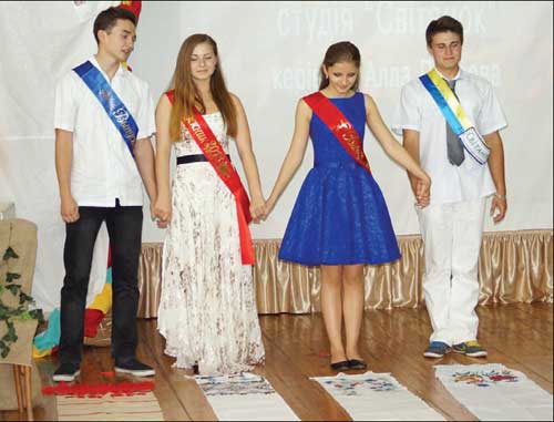 А матер╕ цьогор╕чних випускник╕в уже стелили рушники ╕ посипали пшеницею сво╖х голуб’ят, як╕ готувались покинути не т╕льки студ╕ю, р╕дну школу, але й р╕дний д╕м. Дитинство минуло... ╤ текли по щоках сльози радост╕ й смутку, ╕ звучав прощальний вальс для випускник╕в — Юл╕, Олександра, Мар╕╖ та Артема, для педагог╕в Алли Володимир╕вни та Олександра Олекс╕йовича ╕ для вс╕╓╖ зразково╖ театрально╖ студ╕╖ «Св╕танок». ╤, звичайно, за союз батьк╕в, д╕тей та педагог╕в Алла Петрова подякувала ус╕м батькам, як╕ прагнуть порозум╕ння в колектив╕, п╕дтримують заходи «св╕танк╕вц╕в», а особлива подяка була Серг╕ю Сукачу та ╤рин╕ Меркулов╕й: ╖хня любов, ╖хн╕й душевний внесок забезпечують д╕тям гарний настр╕й ╕ святков╕сть. Випускники за традиц╕╓ю отримали м’як╕ ╕грашки, як╕ будуть ╖м нагадувати роки, проведен╕ в студ╕╖, ╕ засп╕вали разом востанн╓ п╕сню, яка буде лунати для них усе життя.