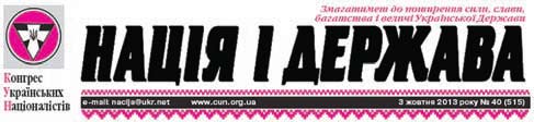10 РОК╤В ТОМУ – 14 ЖОВТНЯ 2003 РОКУ — ВИЙШОВ У СВ╤Т ПЕРШИЙ НОМЕР ГАЗЕТИ КОНГРЕСУ УКРА╥НСЬКИХ НАЦ╤ОНАЛ╤СТ╤В «НАЦ╤Я ╤ ДЕРЖАВА» «Св╕тличани» щиро в╕тають творц╕в патр╕отичного укра╖нського часопису з юв╕ле╓м! Здоров’я вам ╕ вс╕ляких гаразд╕в! Нехай множаться ряди ваших читач╕в-патр╕от╕в — справжн╕х буд╕вничих нашо╖ незалежно╖ Укра╖ни! Передплатний ╕ндекс «Нац╕╖ ╕ держави» — 09715. Передплатна варт╕сть тижневика: на 1 м╕сяць – 9 грн. 36 коп. на 3 м╕сяц╕ – 27 грн. 48 коп. на 6 м╕сяц╕в – 53 грн. 31 коп. на 12 м╕сяц╕в – 105 грн. 42 коп. Вказана к╕нцева передплатна варт╕сть видання, яка врахову╓ його варт╕сть з доставкою та варт╕сть приймання передплати. Передплату на часопис «Нац╕я ╕ держава» можна оформити у будь-якому поштовому в╕дд╕ленн╕ м╕ста, району, селища м╕ського типу чи села. Передплатити видання через ╤нтернет можна на сайт╕ ДП «Преса» www.presa.ua за допомогою серв╕су «Передплата On-line». Трива╓ передплата газети «Нац╕я ╕ держава» на листопад ╕ грудень 2013 року. Передплат╕ть газету для себе, сво╖х р╕дних та друз╕в, зроб╕ть внесок у розвиток укра╖нсько╖ патр╕отично╖ преси!