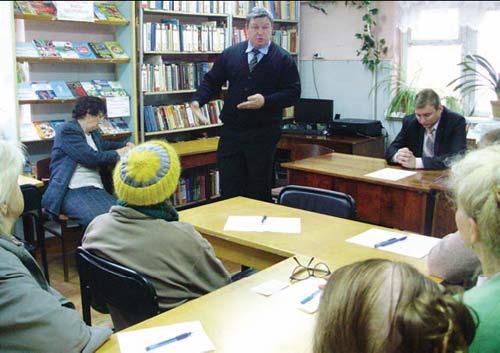 Зустр╕ч╕ з фах╕вцями стали оч╕куваними ╕ традиц╕йними. У програму заходу ув╕йшов виступ Владислава Миколайовича Бел╕ченка, зав╕дувача м╕ського центру здоров’я м. С╕мферополя, ╕ Олександра Олександровича Джерелея, л╕каря-ортопеда 6-╖ м╕сько╖ л╕карн╕. Олександр Олександрович виступив з темою «Артрози ╕ артрити», розпов╕в про в╕дм╕нност╕ цих захворювань ╕ методи л╕кування. Владислав Миколайович розпов╕в про реал╕зац╕ю п╕лотного проекту з державного регулювання ц╕н на л╕ки для л╕кування ос╕б з г╕пертон╕чними хворобами, а також вони в╕дпов╕ли на численн╕ запитання присутн╕х.