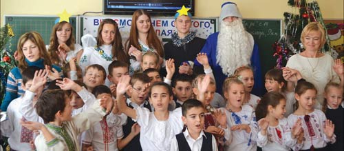 Перед Днем святого Миколая до редакц╕╖ зателефонувала знайома вчителька ╕з с╕мферопольсько╖ Укра╖нсько╖ г╕мназ╕╖ ╕ запросила «Кримську св╕тлицю» на незвичайний урок, якого ╖╖ учн╕ чекали ц╕лий р╕к! Протягом усього цього року д╕ти гарно вчилися, старанно виконували вс╕ домашн╕ завдання, а особливо — творч╕. ╥хн╕ чудов╕ в╕ршики, малюночки та розпов╕д╕ були нав╕ть надрукован╕ у нашому «Джерельц╕». Майже вс╕ учн╕ брали участь у р╕зних конкурсах, були чемними, допомагали р╕дним — робили багато добрих справ. У нагороду за це у 3-Б клас цього дня обов’язково повинен був зав╕тати святий Миколай. Д╕вчатка та хлопчики разом з╕ сво╖м вихователем Любов’ю Петр╕вною Гуленко прикрасили новор╕чну ялинку, намалювали плакат з образом Миколая, вивчили в╕рш╕ та п╕сн╕ про нього. А ще написали йому листи з╕ сво╖ми побажаннями, згадавши вс╕ сво╖ добр╕, а дехто, може, й не зовс╕м чемн╕ вчинки. Д╕ти вкинули листи в скриньку ╕ засп╕вали хором п╕сню «Ой, хто, хто Миколая любить». Аж раптом в╕дчинилися двер╕ — ╕ до класу зайшли ангели, а за ними — святий Миколай! В╕н прив╕тав ус╕х д╕ток, подякував ╖м за те, що добре вчилися ╕ поводилися, а Артему Одайському та ╢вгену Новаку вручив ще й грамоти за активну участь в акц╕╖ «Збережемо дерева!». Адже хлопц╕ зробили д╕йсно добру справу — з╕брали найб╕льше макулатури. Вс╕ учн╕ отримали солодк╕ подарунки, а це означа╓, що в 3-Б клас╕ вчаться лише розумн╕, чемн╕, добр╕ д╕тки. Тож як не розпов╕сти тепер про вчительку Укра╖нсько╖ г╕мназ╕╖ Св╕тлану В’ячеслав╕вну Римську, яка з 1-го класу вчить ╖х «розумному, доброму, в╕чному», щоб були вони саме такими!
