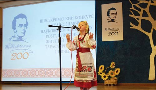 Якось чула по телев╕зору в╕д одного з пол╕толог╕в приблизно таке: населення Укра╖ни насправд╕ под╕ля╓ться не на «зах╕дняк╕в» ╕ «сх╕дняк╕в» з принциповими суперечностями у поглядах, а на людей, як╕ люблять Укра╖ну, ╕ тих, хто не любить ╖╖. А х╕ба н╕? ╤ як под╕лити, скаж╕мо, Крим за тими чи ╕ншими поглядами його населення, якщо тут мешкають не лише прихован╕ ╕ неприхован╕ сепаратисти, але й щир╕ патр╕оти? Що робити, прим╕ром, з приватним навчально-виховним комплексом «Г╕мназ╕я-школа-сад «Консоль», якщо ╖╖ засновник, голова нин╕шньо╖ Верховно╖ Ради Криму Володимир Константинов дотриму╓ться сьогодн╕ недержавницько╖, нав╕ть обурливо╖ позиц╕╖, про що св╕дчать заяви кримського парламенту, а школа живе зовс╕м ╕ншим життям — тут виховують справжн╕х син╕в ╕ дочок сво╓╖ В╕тчизни? Тож як д╕лити наш Крим у раз╕ виникнення критично╖ ситуац╕╖? Невже р╕зати по-живому, руйнуючи родини, де люди можуть мати полярн╕ погляди, в╕дривати в╕д пуповини шк╕льн╕ колективи? Вих╕д один: зробити все, щоб до цього не д╕йшло. А посприяти цьому багато в чому можуть ╕ наш╕ вчител╕, небайдуж╕ самов╕ддан╕ люди, для яких на першому м╕сц╕ — доля ╖хн╕х учн╕в. Не знаю, як ╕ за що голосу╓ Лариса Георг╕ад╕ як заступник голови пост╕йно╖ ком╕с╕╖ ВР АРК з осв╕ти, але як директор НВК «Консоль» вона завжди «голосу╓» на користь учн╕в. Бо жити в держав╕, яку не шану╓ш, так само некомфортно, як ╕ жити у нелюб╕й родин╕. Колись мене вразили почут╕ в╕д директора з╕ сцени незвичн╕ слова: «Великая Украина». Дивуюся пан╕ Ларис╕ й дос╕, хоча наукову конференц╕ю, присвячену Тарасу Григоровичу Шевченку, в╕дв╕дую вже втрет╓. Знаю, що цього року вона ма╓ бути особливою, але не особливою для мене вона ще не була. ╤ це передовс╕м просто велике Шевченк╕вське свято, яке розпочина╓ться з п╕сн╕ «Реве та стогне Дн╕пр широкий», що викону╓ хлопчик з в╕деоекрану, а присутн╕ слухають його стоячи, дал╕ в програм╕ — в╕тальн╕ слова, п╕сн╕, танц╕ ╕ декламування у виконанн╕ школяр╕в, захист учн╕вських науково-досл╕дницьких роб╕т ╕ церемон╕я нагородження переможц╕в, що теж не обходиться без концертних номер╕в та теплих сл╕в. А сьогодн╕ — ще й презентац╕я започаткованого тут Шевченк╕вського музею. Першою мала слово Тетяна Сух╕на, яка представляла тут м╕ську шк╕льну владу, вона зауважила, що популярн╕сть конкурсу дедал╕ зроста╓. В╕н ╕ насправд╕ ╕з всекримського вже перетворю╓ться на всеукра╖нський. На конкурс було подано 35 роб╕т, ╕ на 10-ту годину вже прибули до С╕мферополя учн╕ ╕з найв╕ддален╕ших куточк╕в Криму. Представники ж ╕нших рег╕он╕в захищалися он-лайн. Показовою у цьому в╕дношенн╕ можна вважати й секц╕ю, де на захист╕ учн╕вських роб╕т побувала ╕ я. Вона об’╓днала дв╕ ном╕нац╕╖: «Укра╖на — Крим — Шевченко» та «Ауд╕ов╕зуальн╕ творч╕ роботи». У жур╕ — Ростислав Семеня (головний редактор ТО «Рад╕о «Крим», ДТРК «Крим»), Андр╕й ╤ванець (координатор ГО «Тавр╕йська гуман╕тарна платформа, сп╕вроб╕тник Нац╕онального ╕нституту стратег╕чних досл╕джень) та Ольга Лазар╕д╕ (методист Кримсько╖ ф╕л╕╖ ╤нституту ╕нновац╕йних технолог╕й МОН Укра╖ни), ведуть захист господар╕ — вчителька ╤рина Пахомова. Розпочина╓ться в╕н ╕з восьмикласниц╕ Катерини Тюлюбаново╖, яка представля╓ м. Глоб╕не Полтавськ