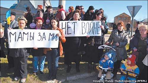 К╕лька сотень кримських ж╕нок провели на ви╖зд╕ з С╕мферополя акц╕ю протесту за мир ╕ проти рос╕йського вторгнення в Крим. Вони вишикувалися вздовж автотраси з укра╖нськими прапорцями, жовтими ╕ блакитними кульками ╕ плакатами: «Крим — це Укра╖на», «Кохати, а не воювати», «Стоп Пут╕н!», «Ми ростимо д╕тей для щастя ╕ миру», «Кримськ╕ татари, рос╕яни, укра╖нц╕ — за мир», «Поверн╕ть нам мир!». Акц╕ю орган╕зували кримськотатарськ╕ й укра╖нськ╕ ж╕нки, до них при╓дналися кримчанки ╕нших нац╕ональностей. Автомоб╕л╕, як╕ про╖жджали трасою п╕д час акц╕╖, сигналили, в╕таючи ╖╖ учасник╕в. * * * К╕лька десятк╕в с╕мферопольських ж╕нок прийшли до штабу в╕йськ берегово╖ оборони ВМС Укра╖ни, щоб п╕дтримати укра╖нських б╕йц╕в, яким погрожують рос╕йськ╕ в╕йськов╕ ╕ пророс╕йськ╕ радикали. Як пов╕домля╓ кореспондент Рад╕о «Свобода», ж╕нки дарували кв╕ти в╕йськовикам, а пот╕м вишикувалися вздовж вулиц╕ Карла Маркса у С╕мферопол╕ з плакатами проти рос╕йсько╖ агрес╕╖ ╕ за мир в Укра╖н╕. * * * 4 березня група ялтинц╕в, не згодна з рос╕йським вторгненням на територ╕ю суверенно╖ держави Укра╖на, пройшла мирним маршем по Набережн╕й. Звучали заклики до миру, ╓дност╕; турист╕в закликали не боятися ╕ при╖жджати в Ялту, де н╕яко╖ в╕йськово╖ агрес╕╖ не сприймають ╕ не допустять.