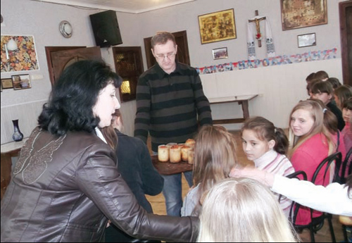 …У благод╕йн╕й ╖дальн╕ лунала духовна музика, д╕ти сходились ╕ займали м╕сця у зал╕, а духмяний запах Великоднього Хл╕ба пробуджував святков╕ в╕дчуття ╕ згадку про недавн╕й Великий День Воскрес╕ння Христового. Пасочки ╕ писанки приваблювали ароматом ╕ оздобою.
